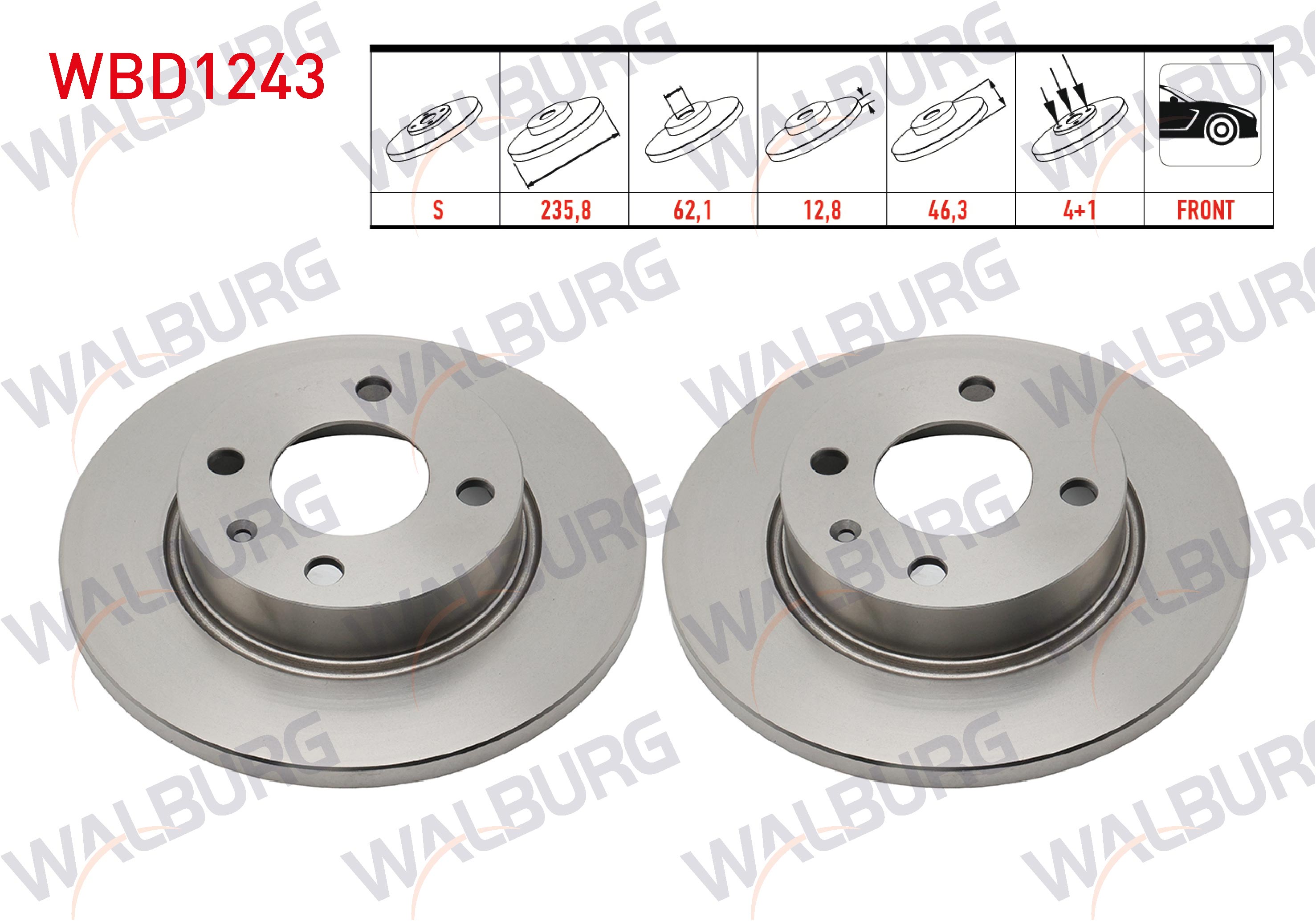WALBURG WBD1243 | Fren Diski Ön Düz 4 Bjn 235,8X12,8X62,1X46,3 Skoda Felicia (6U1) 1.3 1994-2002 / Felicia (6U1) 1.6 1994-2002 / Felicia (6U1) 1.9 D 1994-2002 | 2 Adet