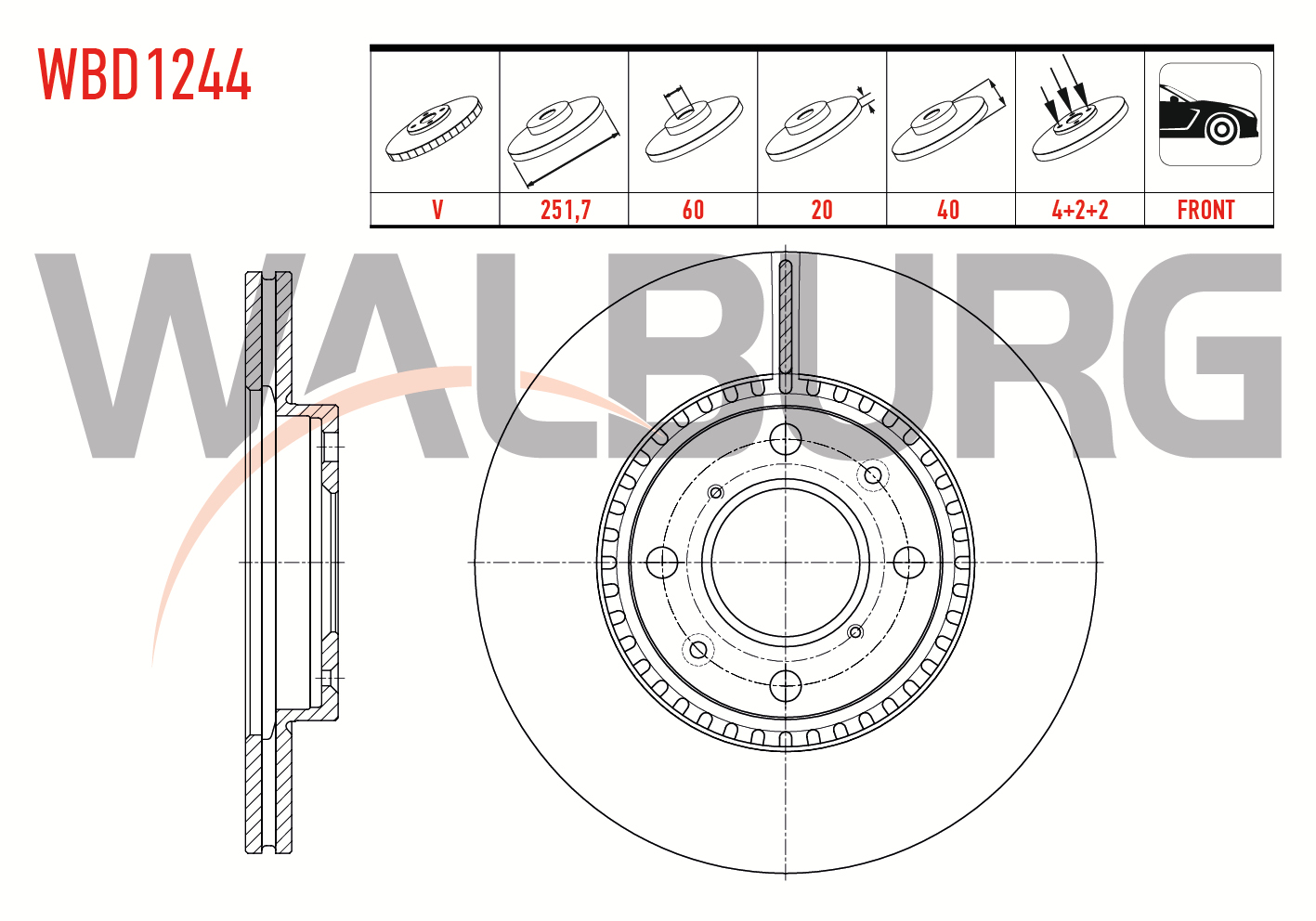 WALBURG WBD1244 | Fren Diski Ön Havalı 4 Bjn 251,7X20x60x40 Suzuki Swift III 1.3İ 2005-2010 / Swift III 1.3 Ddıs 2005-2010 / Swift III 1.5İ 2005-2010 / Splash 1.2İ 2008-/ Splash 1.3 Ddıs 2008-| 2 Adet Takım