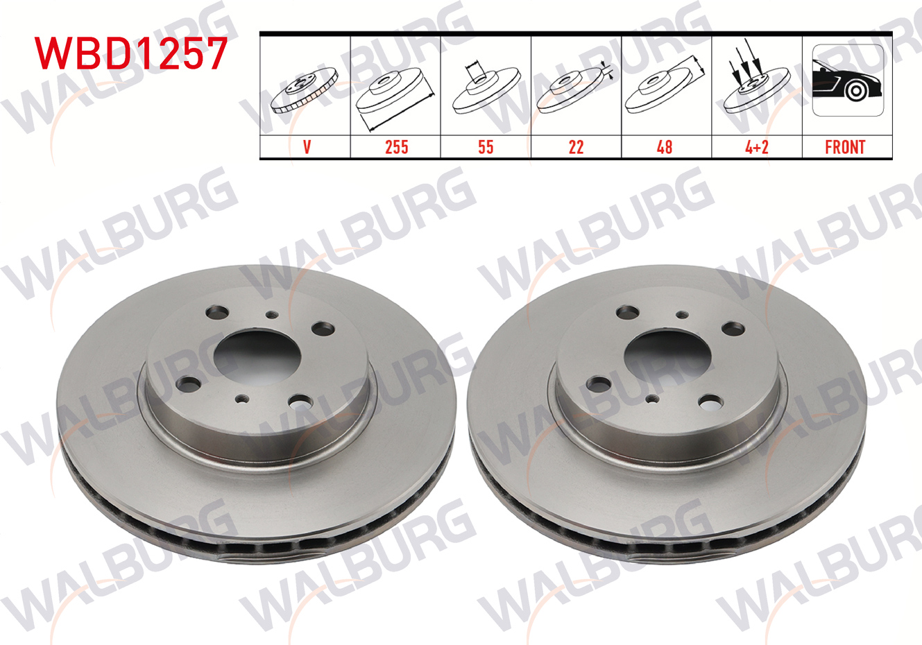 WALBURG WBD1257 | Fren Diski Ön Havalı 4 Bjn 255X22x55x48 Toyota Corolla (_E10_) 1.3İ (Ee101) 1992-1997 / Corolla (_E10_) 1.6İ (Ae101) 1992-1997 | 2 Adet Takım