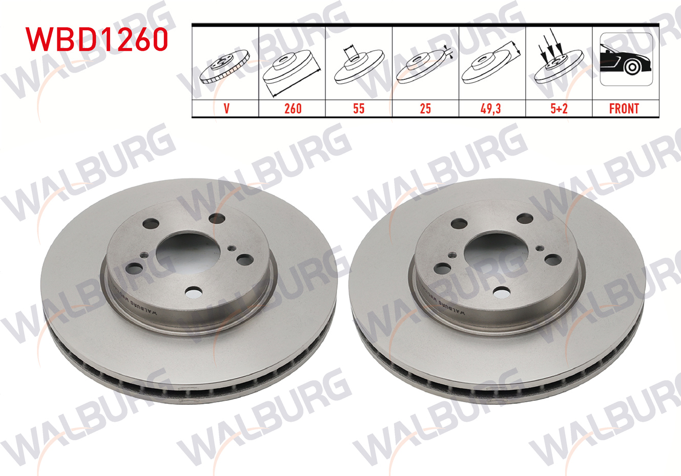 WALBURG WBD1260 | Fren Diski Ön Havalı 5 Bjn 260X25x55x49,3 Toyota Avensis (T22) 1.6İ 1997-2003 / Avensis (T22) 2.0İ 1997-2003 | 2 Adet