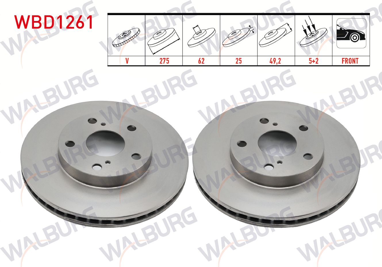 WALBURG WBD1261 | Fren Diski Ön Havalı 5 Bjn 275X25x62x49,2 Toyota Rav4 II (Cla2_, Xa2_, Zca2_, Aca2_) 2.0 Vvt-I 4X4 2000-2006 | 2 Adet Takım