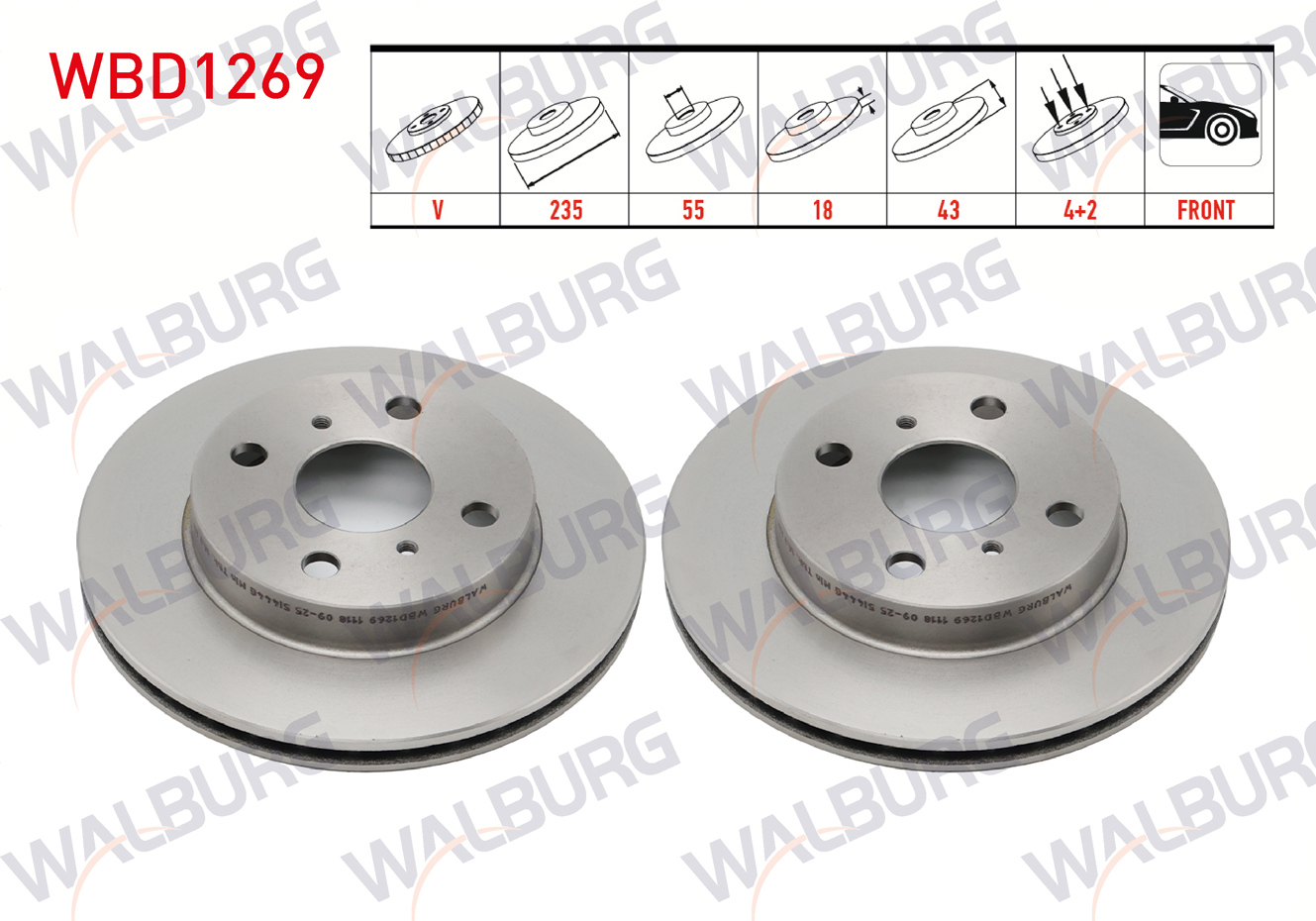 WALBURG WBD1269 | Fren Diski Ön Havalı 4 Bjn 235X18x55x43 Toyota Yaris 1.0İ 1999-2005 / Yaris 1.3İ 1999-2005 | 2 Adet Takım