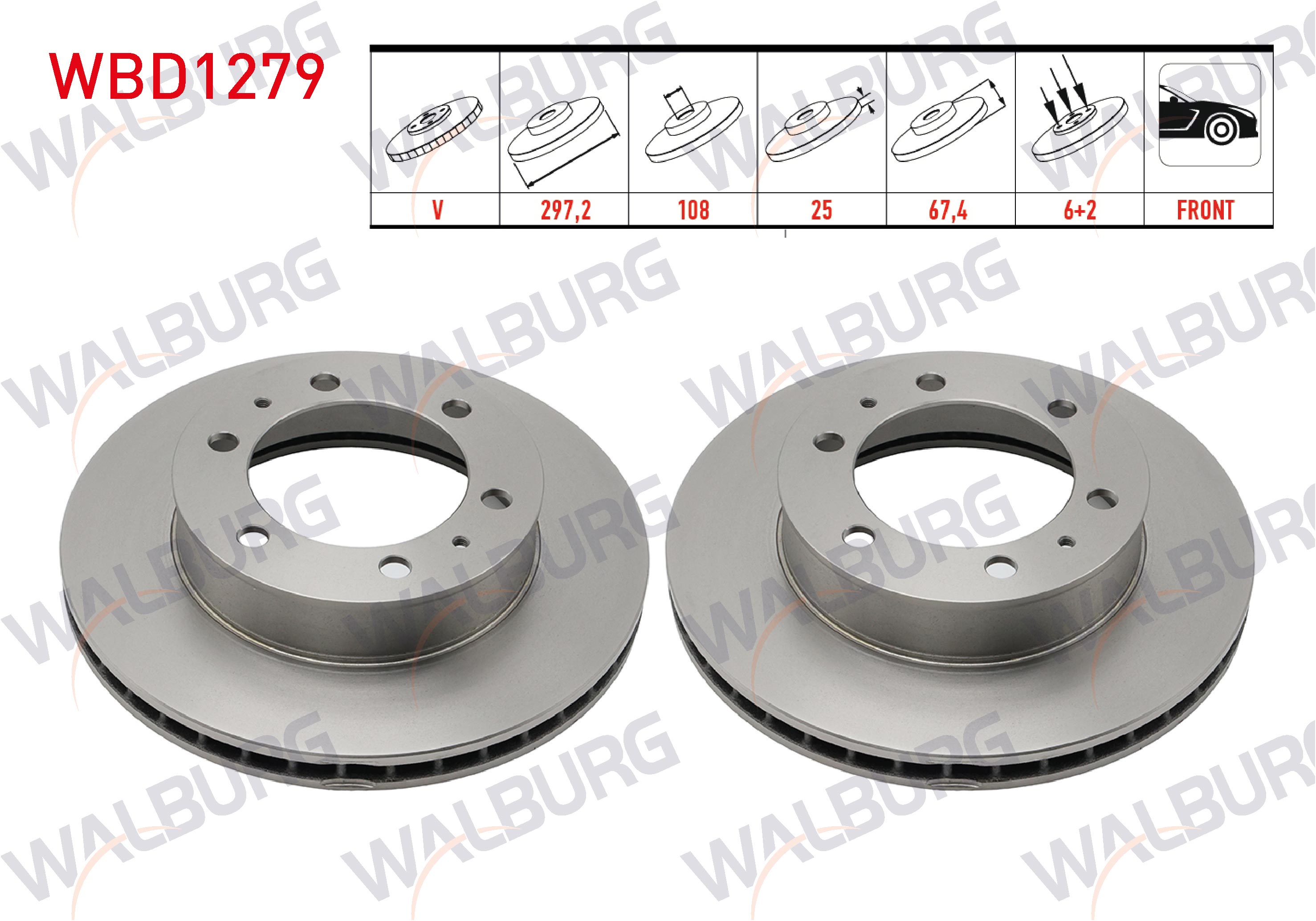 WALBURG WBD1279 | Fren Diski Ön Havalı 6 Bjn 297,2X25x108x67,4 Toyota Hı-Lux Pick Up 2.5 D-4D 2005-2011 / Hı-Lux Pick Up 2.5 D 2005-2011 / Hı-Lux Pick Up 3.0 D-4D 2005-2011 / Hı-Lux Vıgo 2.5 D-4D 4X4 2005-2011 | 2 Adet