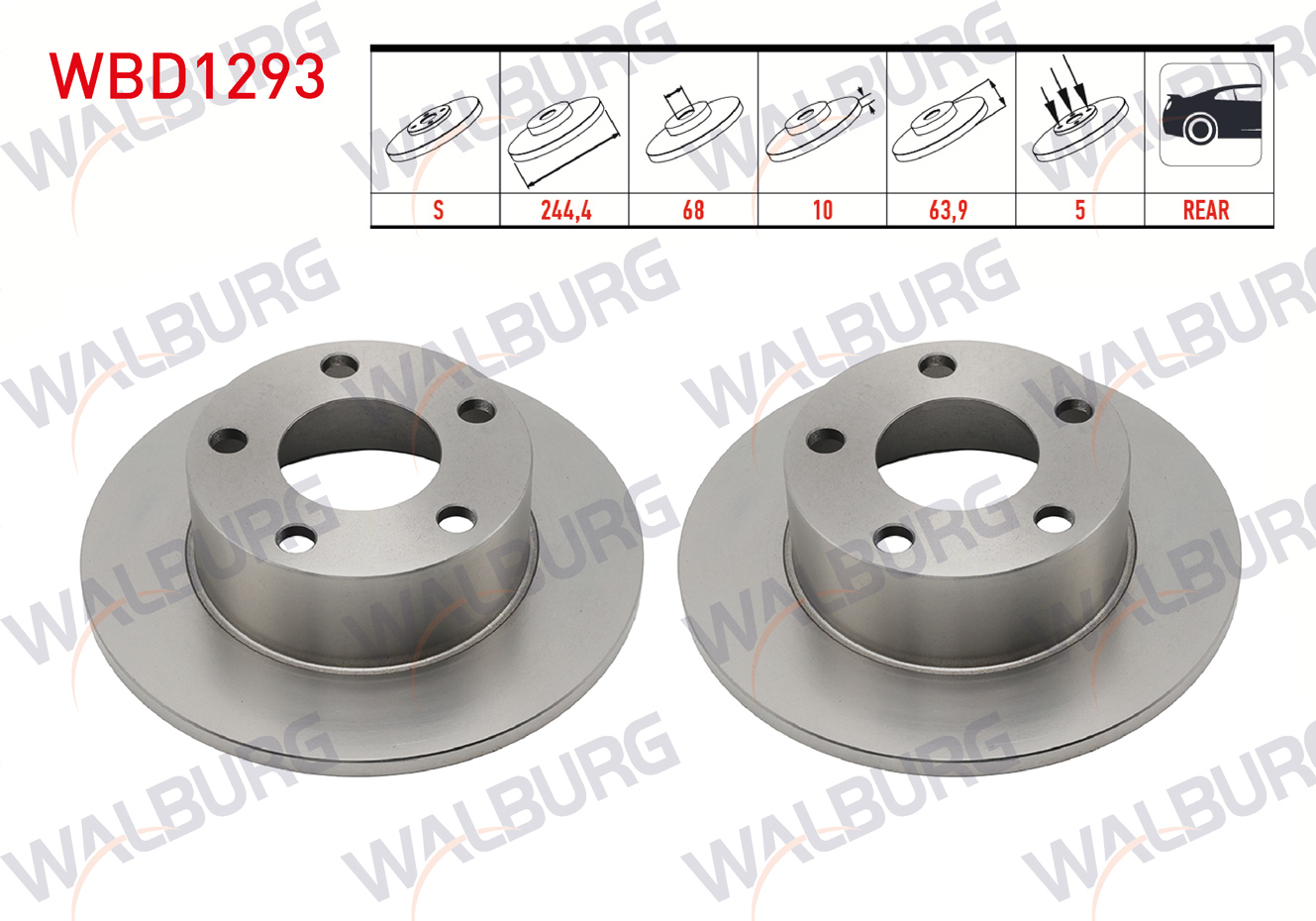 WALBURG WBD1293 | Fren Diski Arka Düz 5 Bjn 244,4X10x68x63,9 Volkswagen Passat 1.6-1.8-1.9 TDI 1996-2005 / Skoda Superb 1.8 T-1.9 TDI-2.0 TDI 2010-2015 / Audi A6 2.0-2.5 TDI 1994-1997 / Audi 100 2.0 1982-1990 | 2 Adet