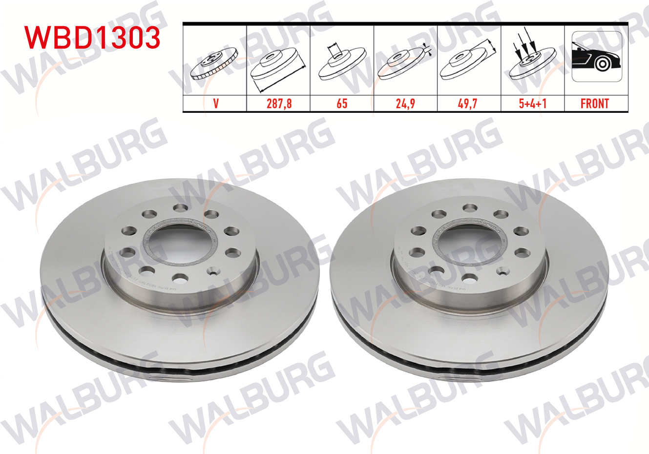 WALBURG WBD1303 | Fren Diski Ön Havalı 5 Bjn 288X24,9X65x49,7 Golf V-VI-VII-VIII 03-/ Jetta III-IV 05-/ T-Roc 17-/ Caddy III-IV 04-/ A3 03-12 / Q2 18-/ Leon 05-12 / Altea 04-/ Toledo 04-09 / Octavia II-III-IV 04-/ Karoq 17-/ Yeti 09 | 2 Adet Takım
