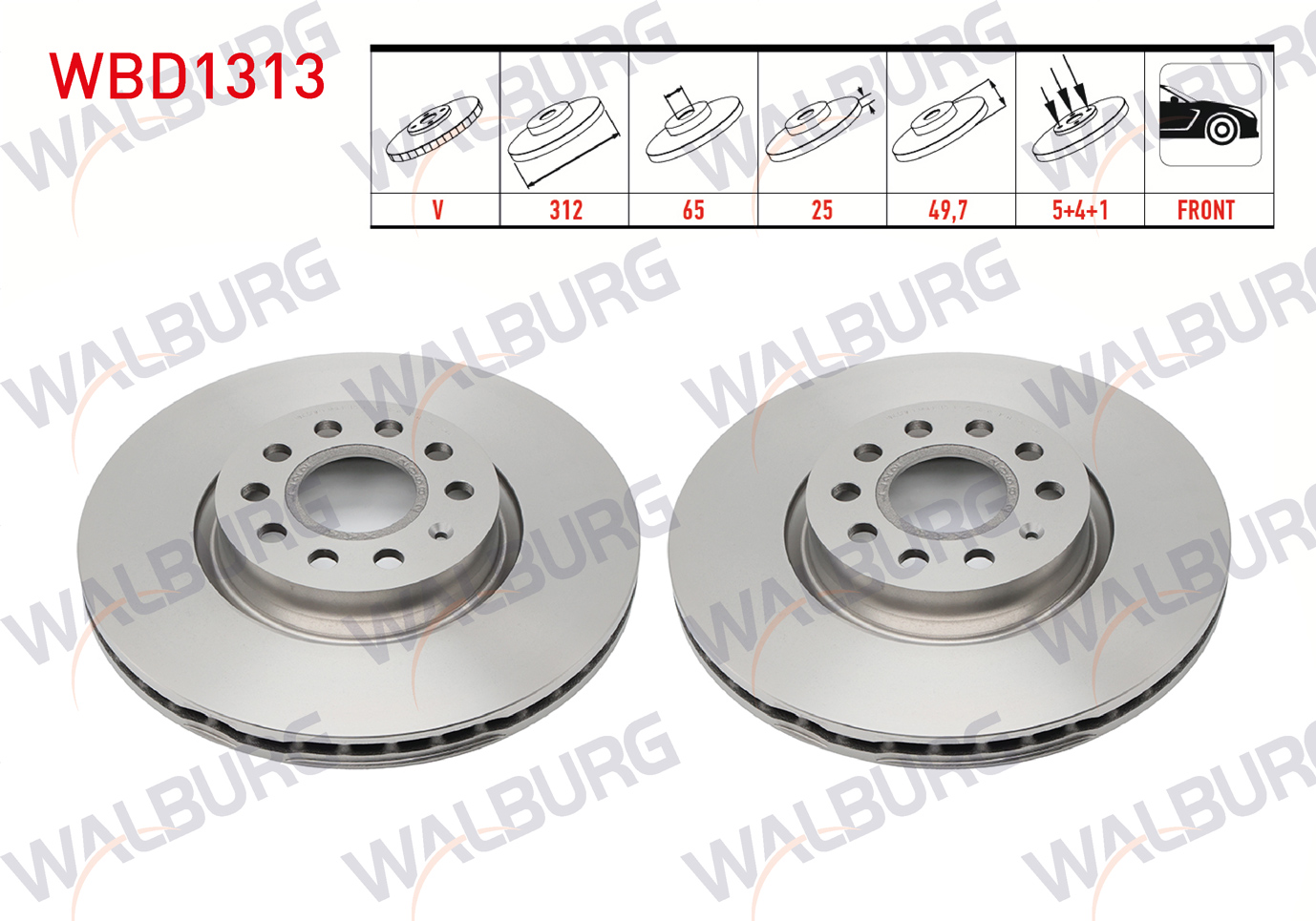 WALBURG WBD1313 | Fren Diski Ön Havalı 5 Bjn 312X25x65x49,7 Golf V 1.4Tsı-1.6 TDI 2003-2009 / Caddy III 2.0 TDI 2004-2015 / Golf VI 1.6İ 2008-2013 / Scirocco 1.4 TSI 2008-/ Skoda Superb 1.6 TDI 2015-/ Passat 1.6 TDI 2008-2012 | 2 Adet