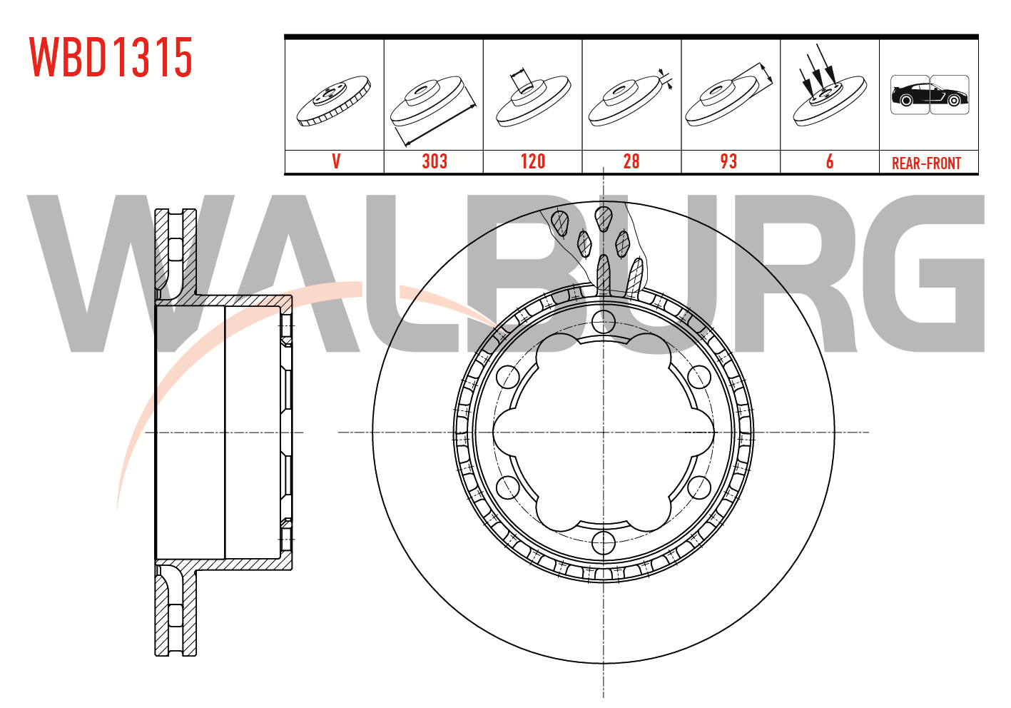 WALBURG WBD1315 | Fren Diski Arka Havalı 6 Bjn 303X28x120x93 VW Crafter Çift Teker 2006-2018 / Mercedes Sprinter 2006-2018 / Mercedes Sprinter Çift Teker 2018-| 2 Adet Takım