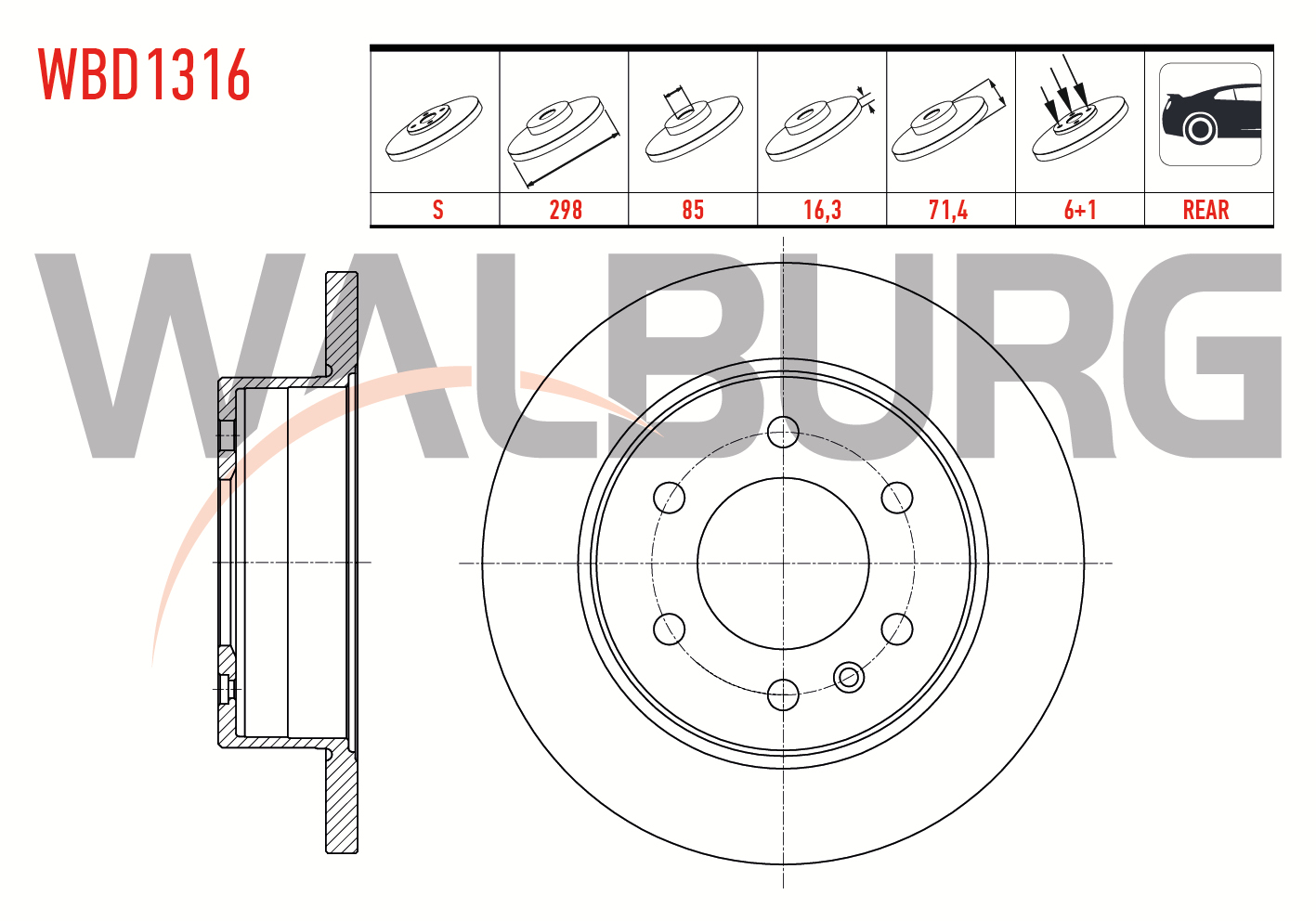 WALBURG WBD1316 | Fren Diski Arka Düz 6 Bjn 298X16,3X85x71,4 Crafter 30-35 2.0 TDI-2.5 TDI 2006-2016 / Sprinter 2T 208 D 1995-2006 / Sprinter 3,5T 313-315-316 CDI 2006-2009 | 2 Adet Takım