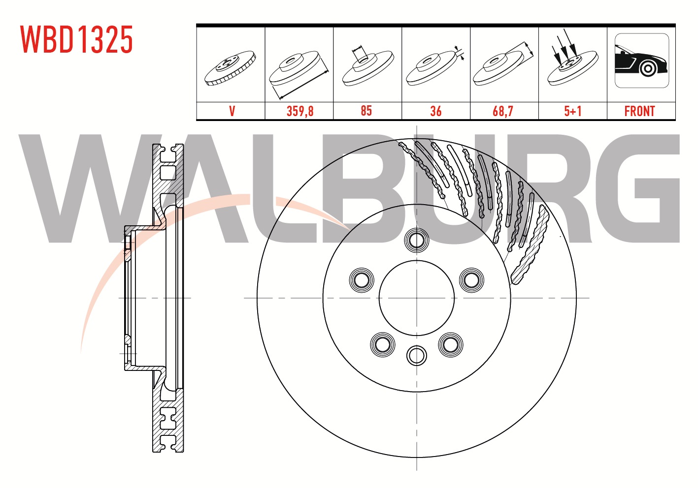 WALBURG WBD1325 | Fren Diski Sol Ön Havalı 5 Bjn 359,80X36x85x68,7 Volkswagen Touareg (7P5) 3.0 TDI V6-3.0 TSI V6 2010-/ Porsche Cayenne 3.0 D-3.0 S Hybrıd-3.6 S-4.8 Gts-4.8 Turbo 2010 -