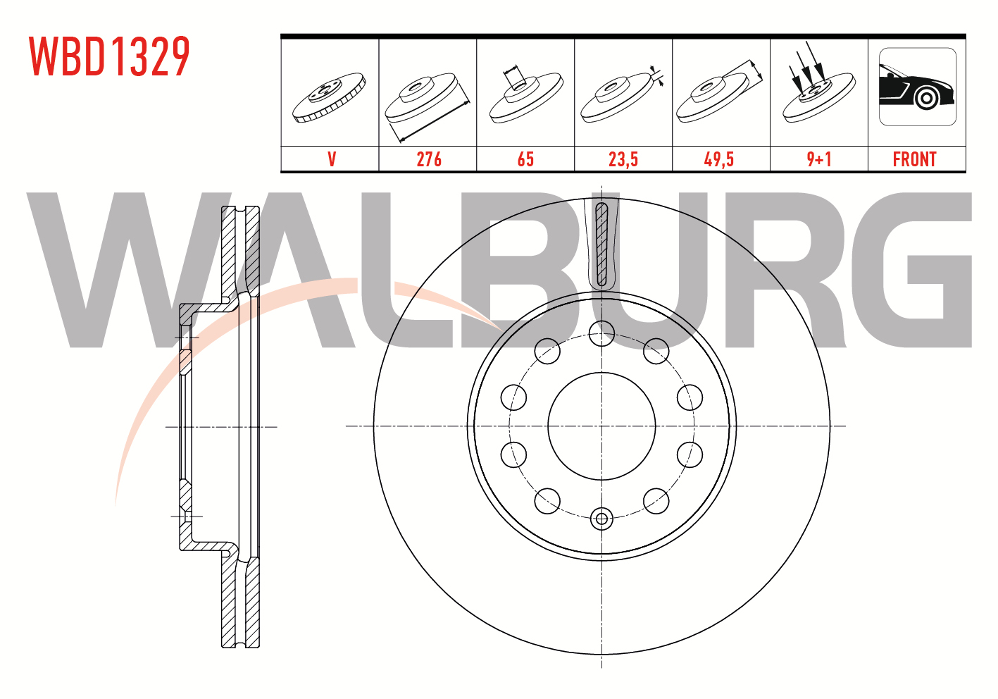 WALBURG WBD1329 | Fren Diski Ön Havalı 5 Bjn 276X23,5X65x49,5 Volkswagen Golf VII 1.6 TDI 2012-/ Golf VII 1.2 TSI 2012-/ Seat Leon 1.6 TDI 2012-/ Leon 1.2 TSI 2012-/ Skoda Octavia 1.6 TDI 2012-| 2 Adet