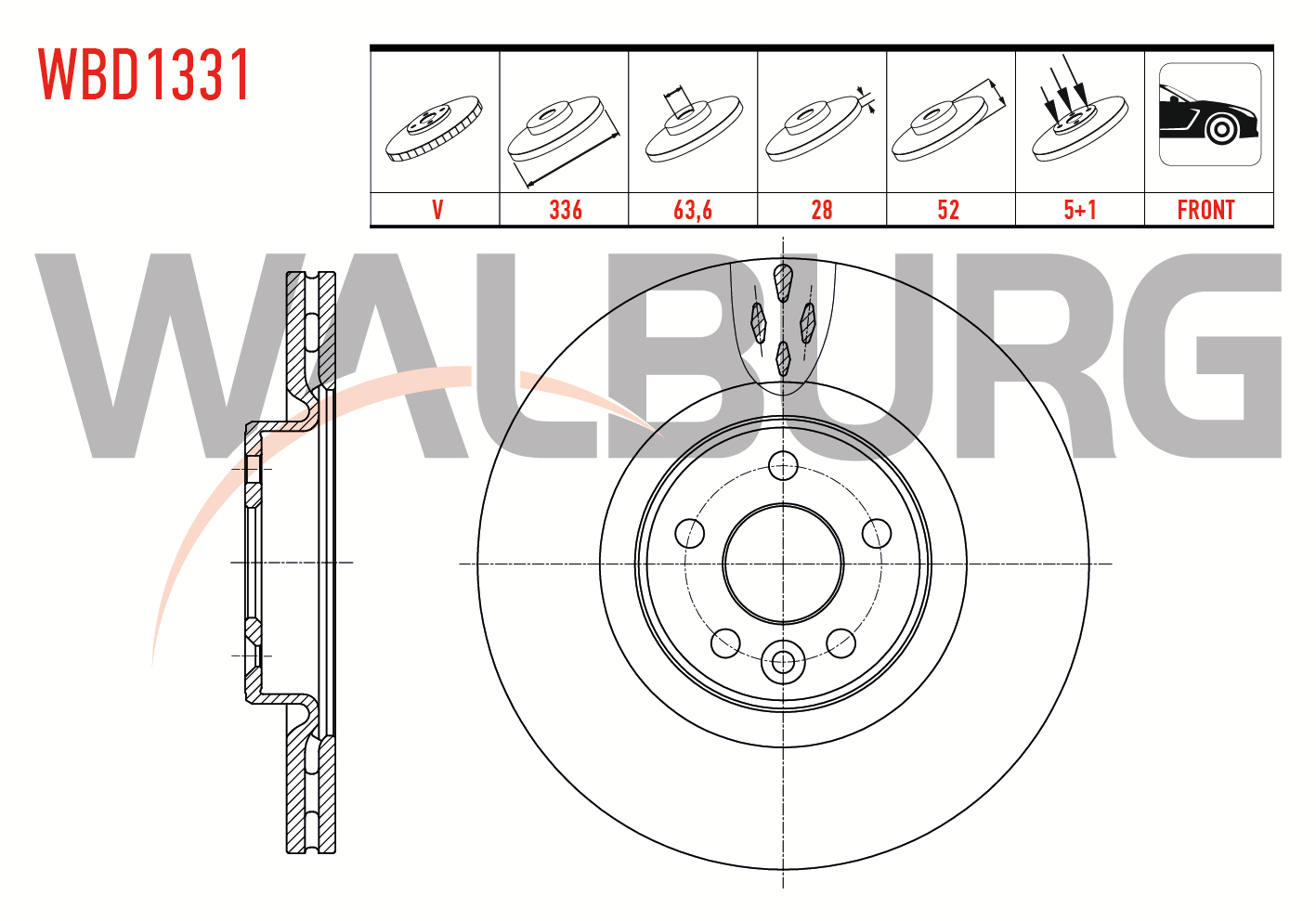 WALBURG WBD1331 | Fren Diski Ön Havalı 5 Bjn 336X28x63,6X52 Volvo S60 II T3-T4-T5-D3-D5-2.0T 18-19 Jant 2010-/ S80 II D3-5-T5-6 2006-/ V60 T6-5-D5-3-1.6D-2.0T 2010-/ V70 III 2.0 T-1.6D-2.0D 2006-/ Xc70 II D3-5-3.2İ 2007-| 2 Adet Takım