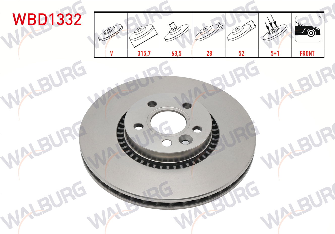 WALBURG WBD1332 | Fren Diski Ön Havalı 5 Bjn 315,7X28x63,5X52 Volvo S60 II T3-T4-D3-2.0T 17 Jant 2010-/ S80 II D3-T5 2006-/ V60 T6-D5-1.6D 2010-/ V70 III 2.0 T-1.6D-2.0D 2006-/ Xc70 II D3 2007-/ Ford Galaxy 2.0 TDCI 2006-| 2 Adet