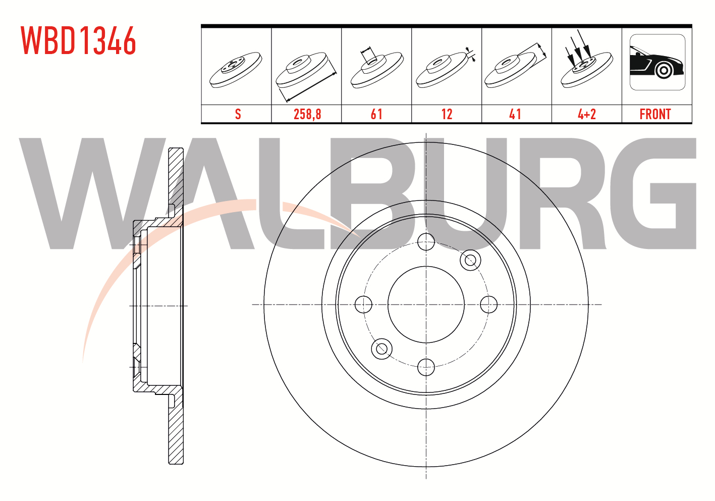 WALBURG WBD1346 | Fren Diski Ön Düz 4 Bjn 258,8X12x61x41 Dacia Logan (Ls) 1.5 DCI 2004-2012 / Logan Mcv (Ks) 1.5 DCI 2007-2013 / Sandero 1.4İ-1.6İ-1.5 DCI 2008-2013 / Logan Mcv 1.2 16V 2007-2013 | 2 Adet