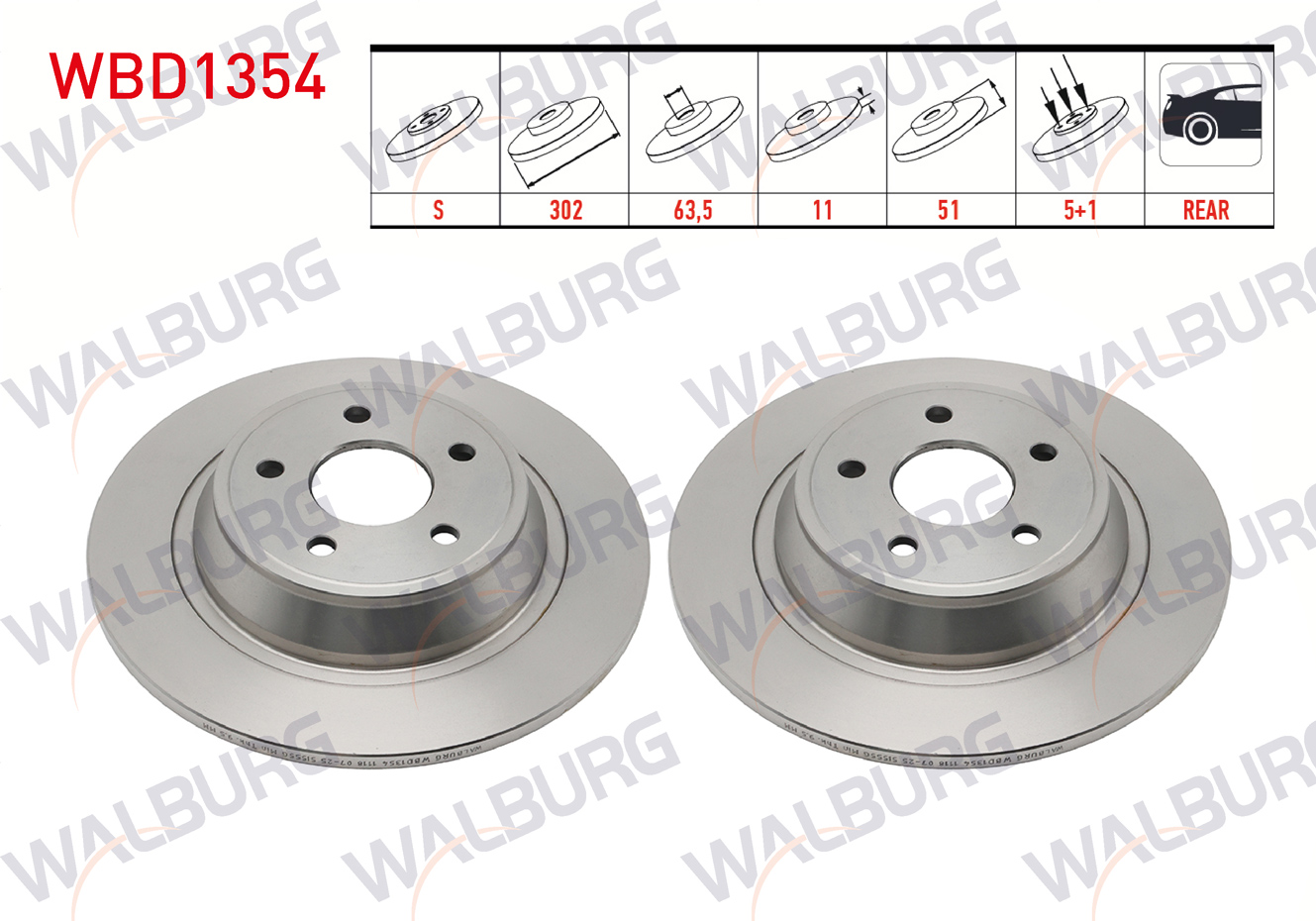 WALBURG WBD1354 | Fren Diski Arka Düz 5 Bjn 302X11x63,5X51 Ford Mondeo V 1.6 TDCI 2014-/ Mondeo V 1.5 Ecoboost 2014-/ Mondeo V 2.0 TDCI 2014-| 2 Adet Takım
