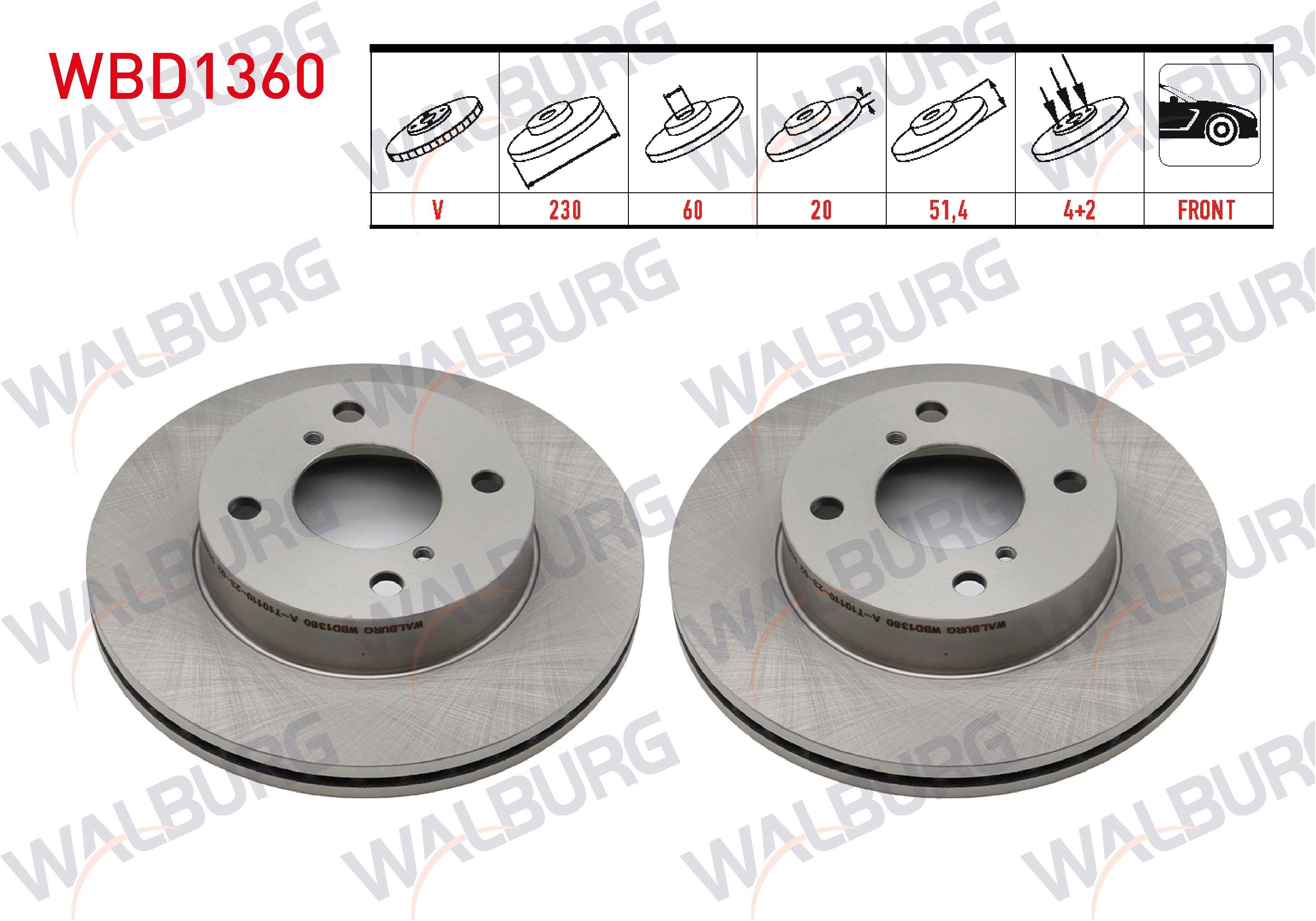 WALBURG WBD1360 | Fren Diski Ön Havalı 4 Bjn 230X20x60x51,4 Suzuki Alto V (Gf) 1.0 2009-| 2 Adet Takım