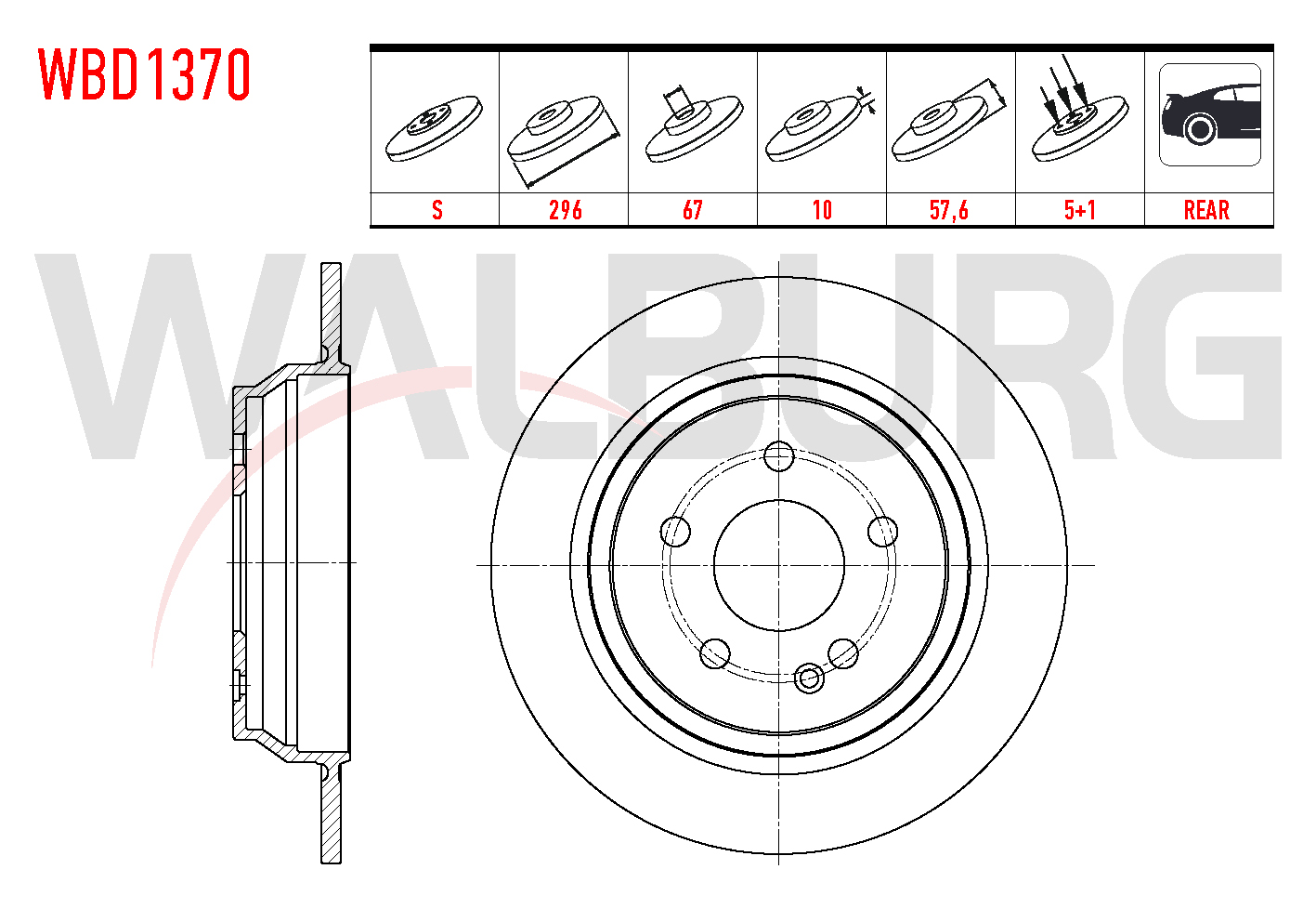 WALBURG WBD1370 | Fren Diski Arka Düz 5 Bjn 296X10x67x57,60 Mercedes Vito 111 CDI-110 CDI-115 CDI-109 CDI-113 CDI-116 CDI-2.0 CDI-2.2 CDI 2003-2014 | 2 Adet