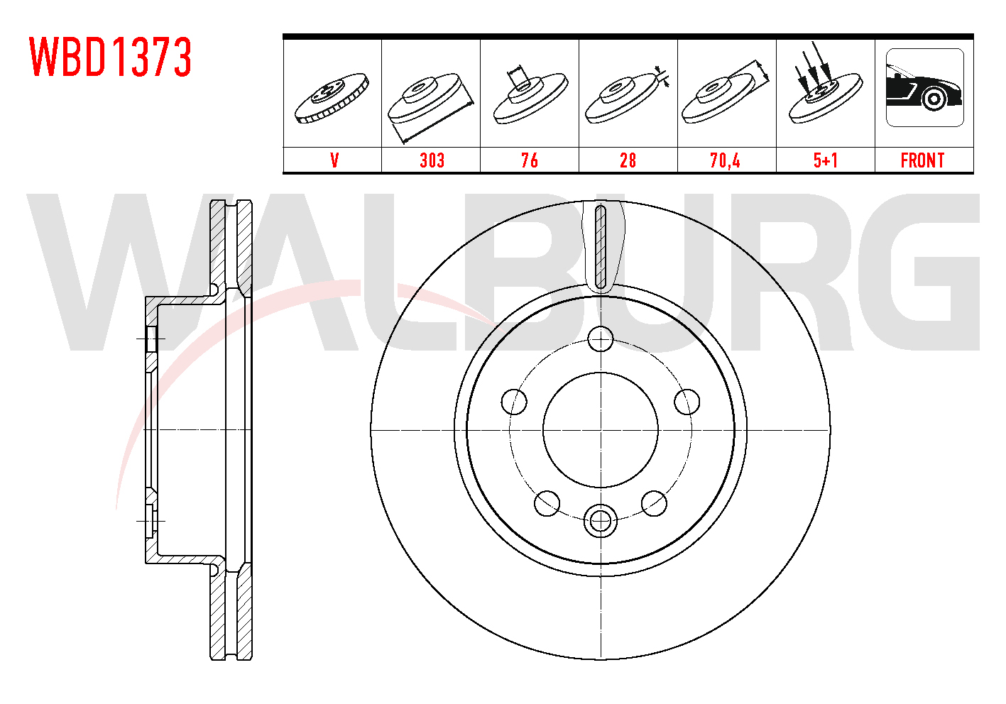 WALBURG WBD1373 | Fren Diski Ön Havalı 5 Bjn 303X28x76x70,40 VW Crafter 2.0 TDI 2018-| 2 Adet