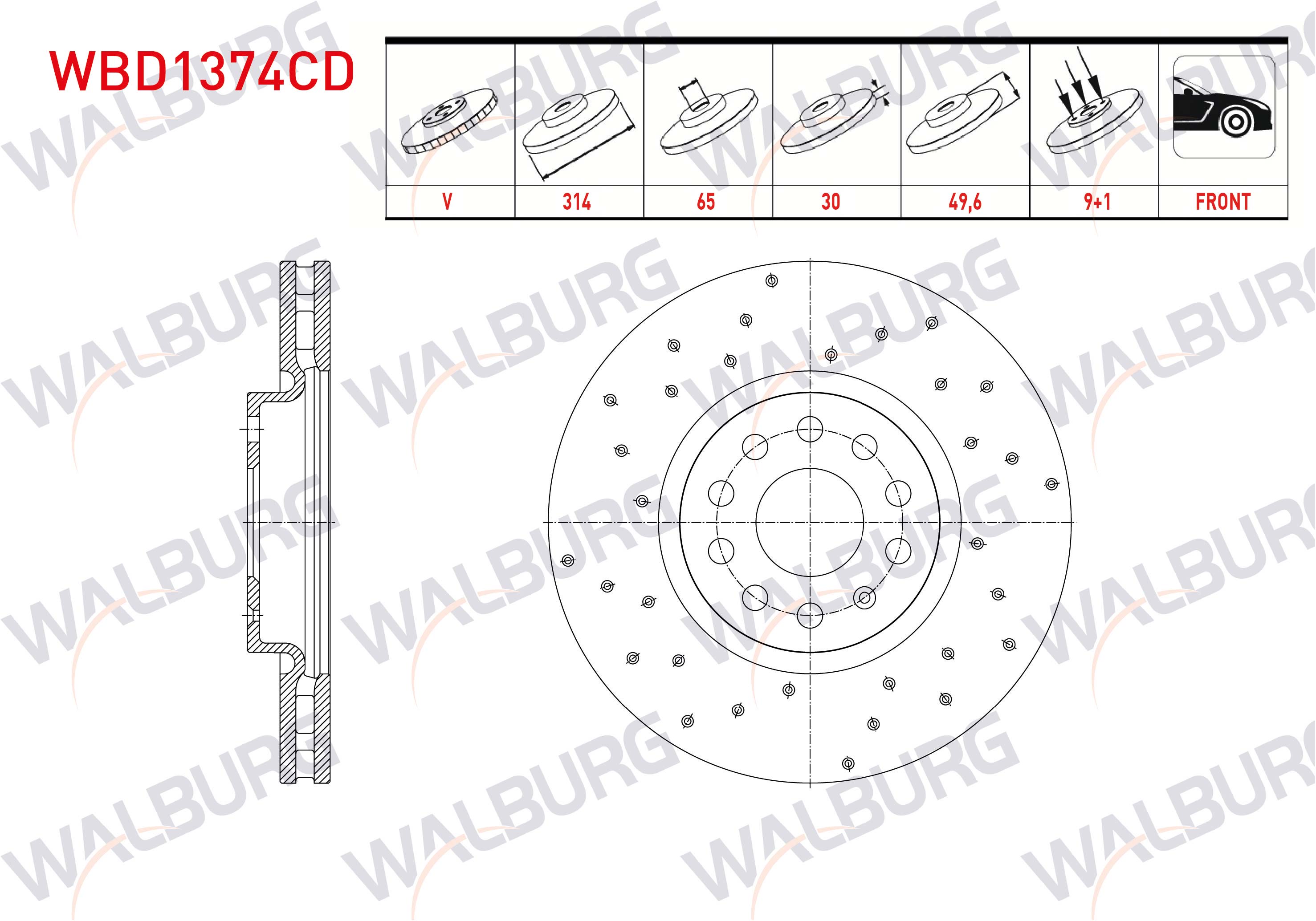 WALBURG WBD1374CD | Fren Diski Ön Havalı Kaplamalı Performans Delikli 5 Bjn 314X30x65x49,60 Volkswagen Tiguan 1.4 TSI-1.6 TDI-2.0 TDI-2016-/ Kodiaq 2.0 TDI-1.4 TSI 2017-| 2 Adet