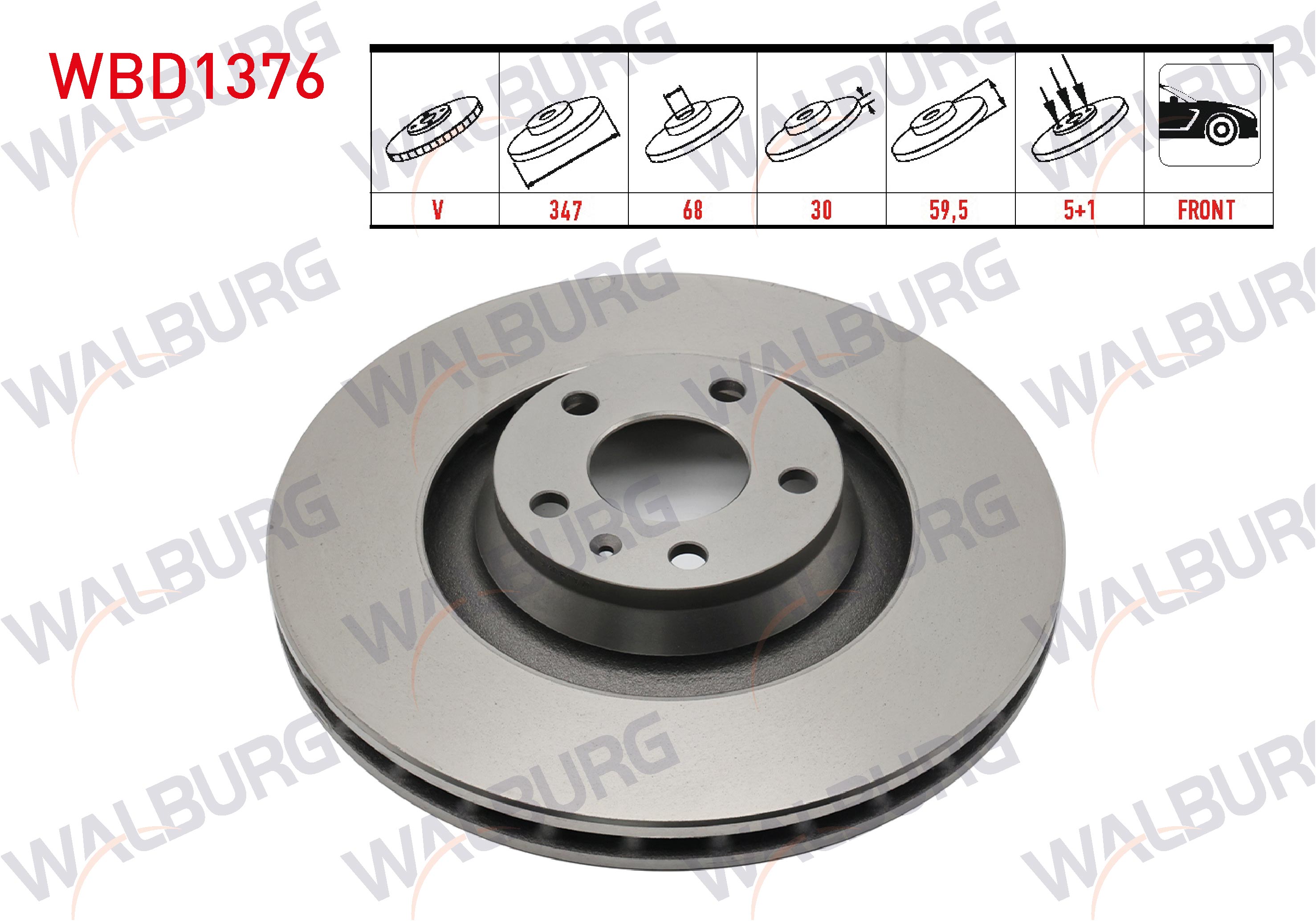 WALBURG WBD1376 | Fren Diski Ön Havalı 5 Bjn 347X30x68x59,50 Audi A6 2.0 TDI-2.7 TDI-3.0 TDI-2.0 TFSI-2.4-3.0 TFSI-3.2 FSI-4.2 2004-2011 | 2 Adet