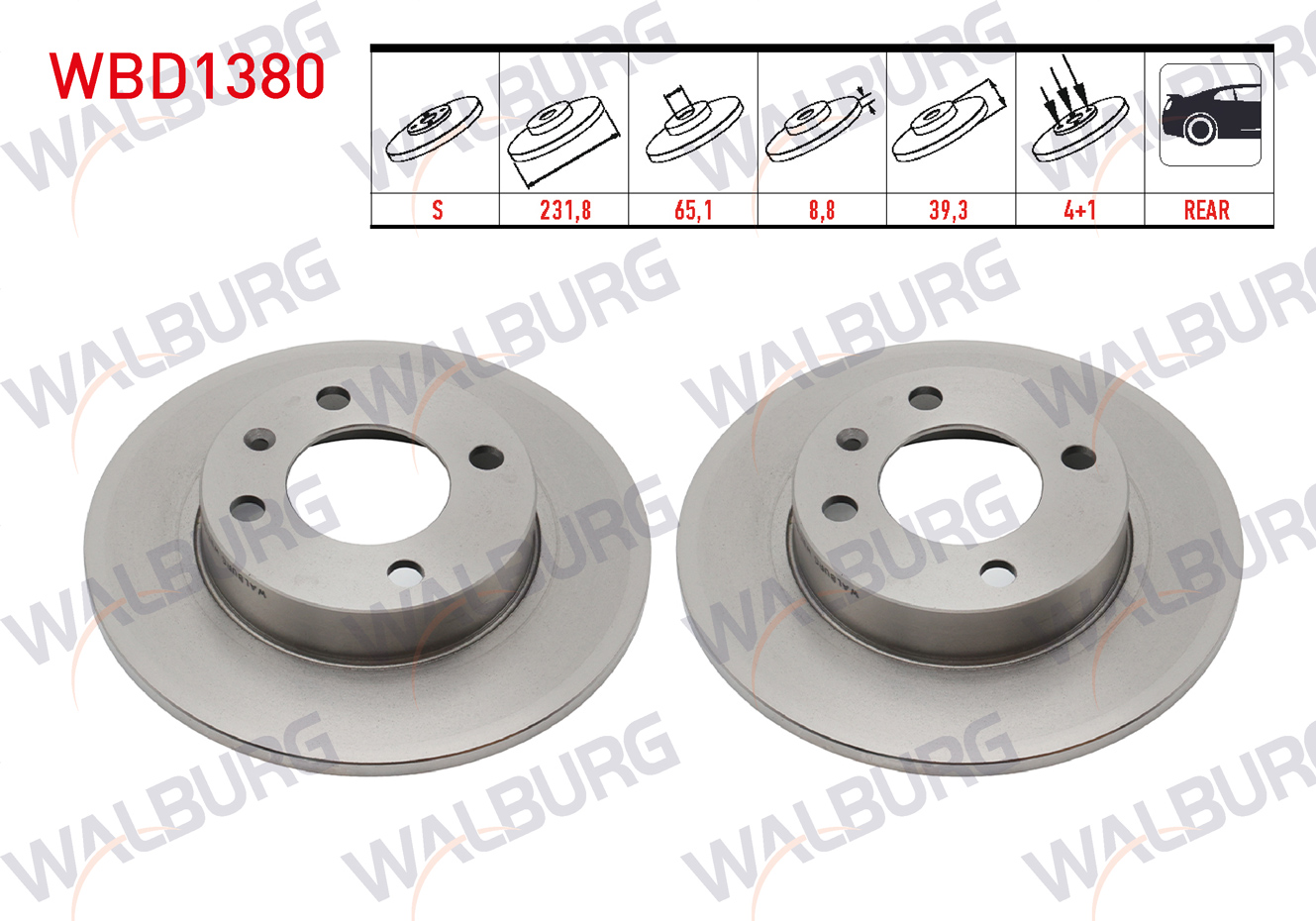 WALBURG WBD1380 | Fren Diski Arka Düz 4 Bjn 231,80X8,80X65,10X39,30 Volkswagen Polo 1.6 1995-2001 / Polo 1.4 TDI 1995-2001 / Polo Classic 1.6 1995-2001 / Cordoba 1.9 TDI-1.6 1999-2002 / Ibiza II 1.9 TDI-1.6İ 1993-2002 | 2 Adet