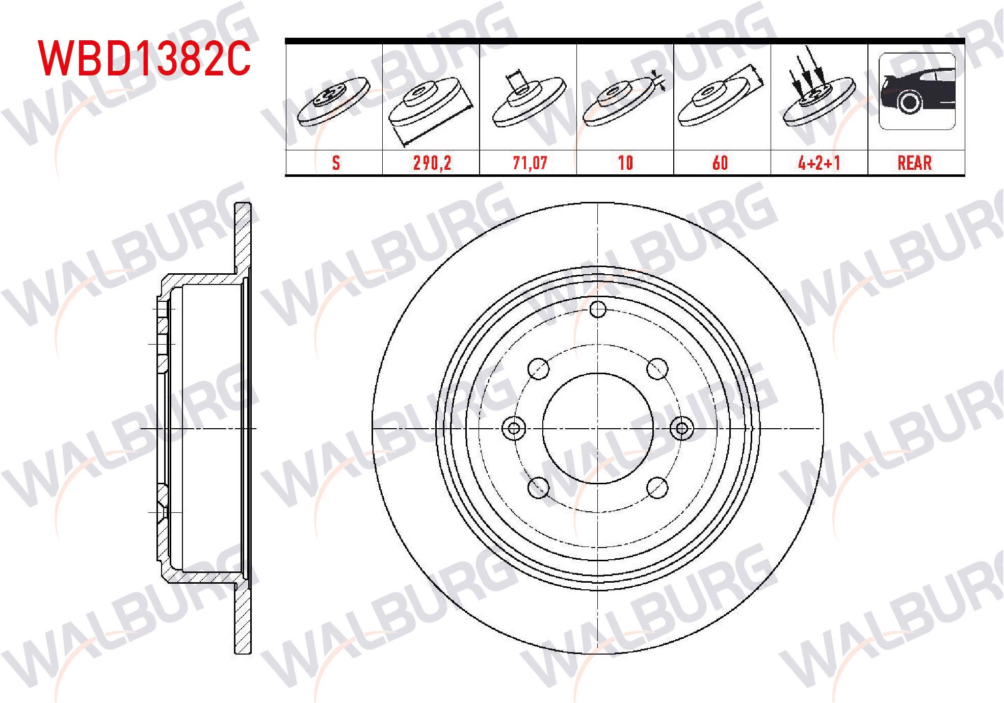 WALBURG WBD1382C | Fren Diski Arka Düz Kaplamalı 4 Bjn 290,20X10x71,07X60 Peugeot 406 (8B) 2.0İ 1995-2004 / 406 (8B) 1.8 1995-2004 / 406 (8B) 2.2 1995-2004 / 406 (8B) 3.0 V6 1995-2004 | 2 Adet