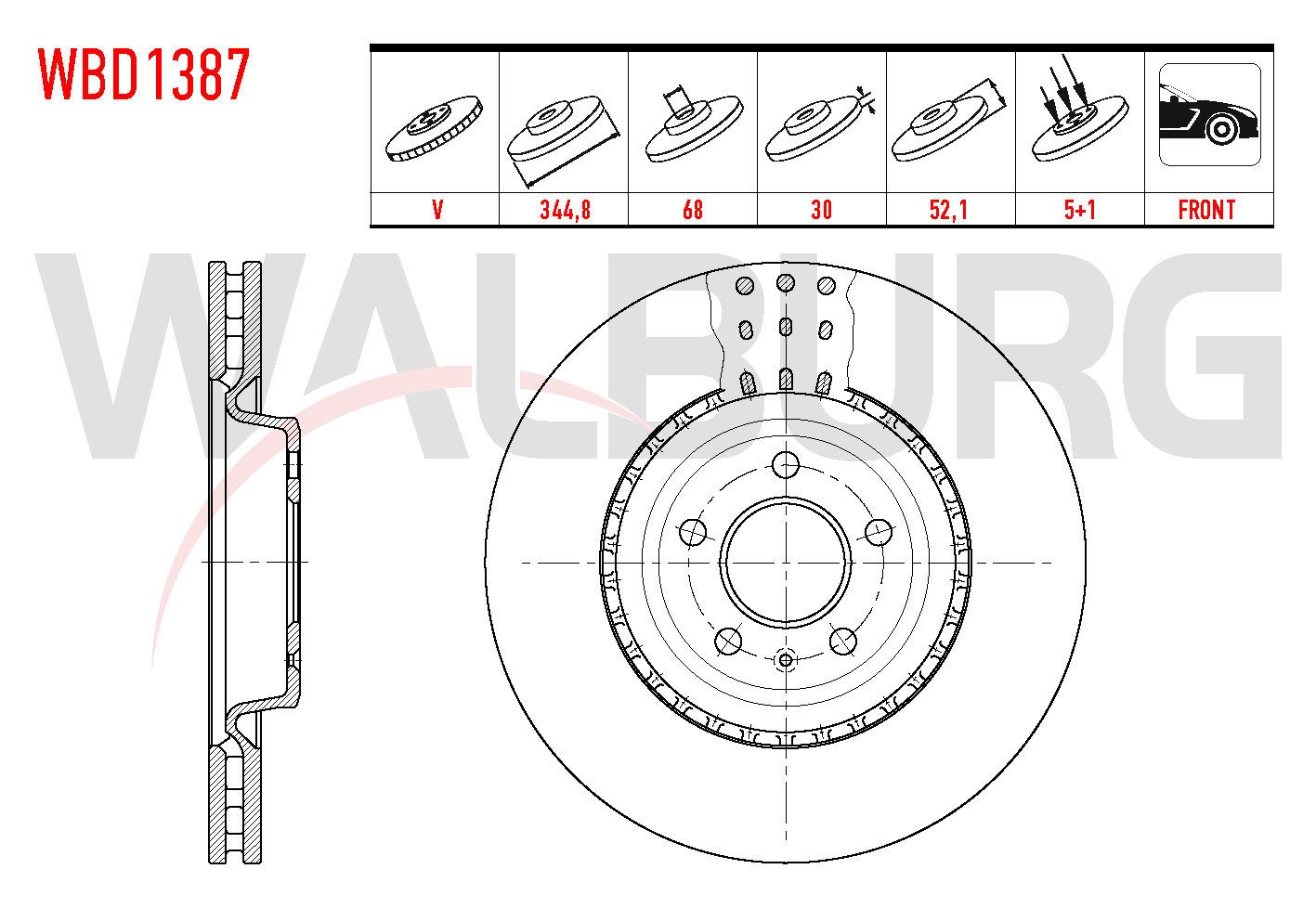 WALBURG WBD1387 | Fren Diski Ön Havalı 5 Bjn 344,8X30x68x52,1 A4 2.0 TDI-2.0 TFSI-1.8 TFSI 2007-2015 / A5 1.8 TFSI-2.0 TDI-2.0 TFSI 2007-2017 / A6 2.0 TDI-2.0 TFSI 2010-/ Q5 2.0 TDI 2008-/ Porsche Macan 2.0 2014-| 2 Adet