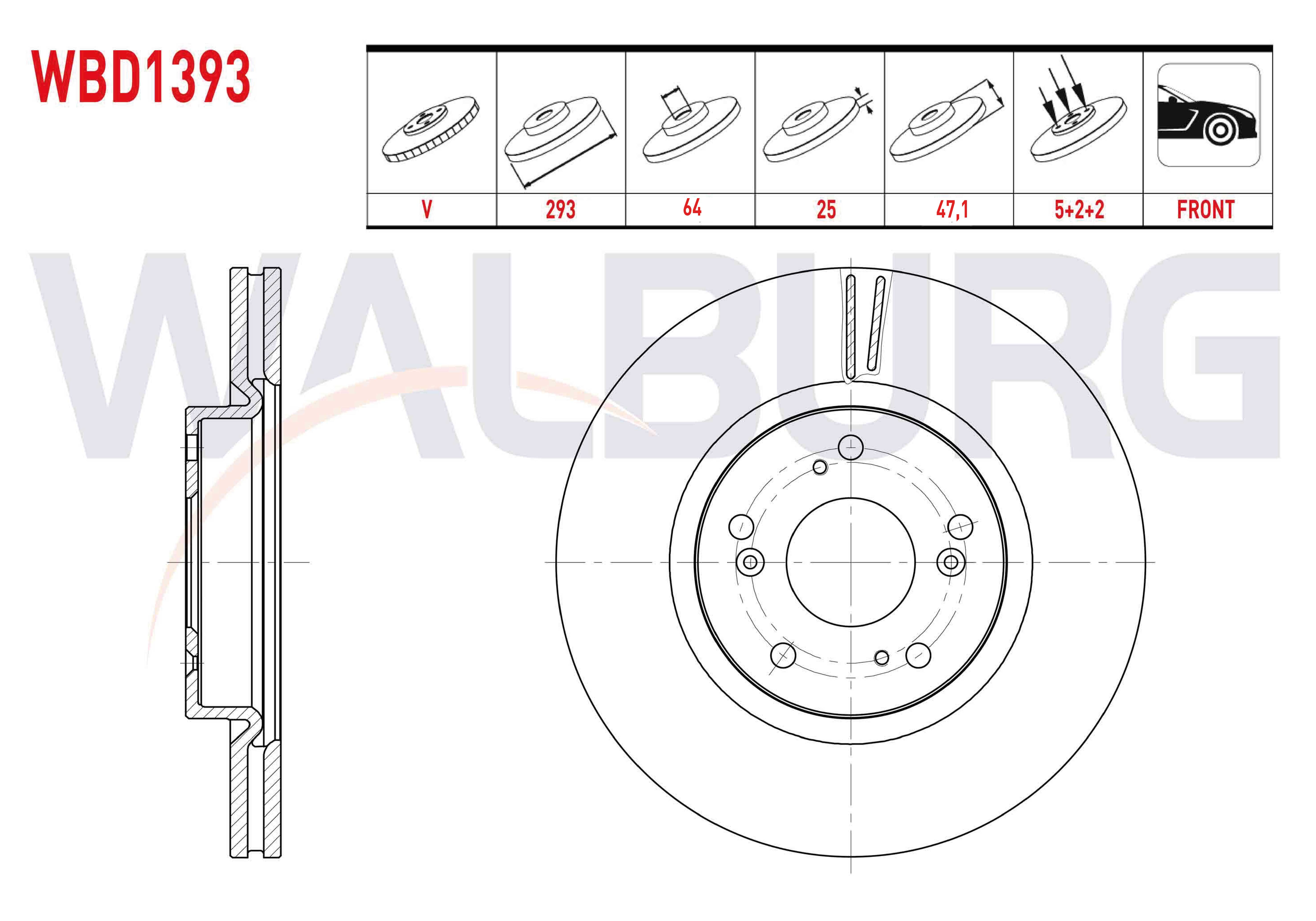 WALBURG WBD1393 | Fren Diski Ön Havalı 5 Bjn 293X25x64x47,1 Honda Civic Ix 1.6 I-Dtec 16 Jant 2012-2016 | 2 Adet