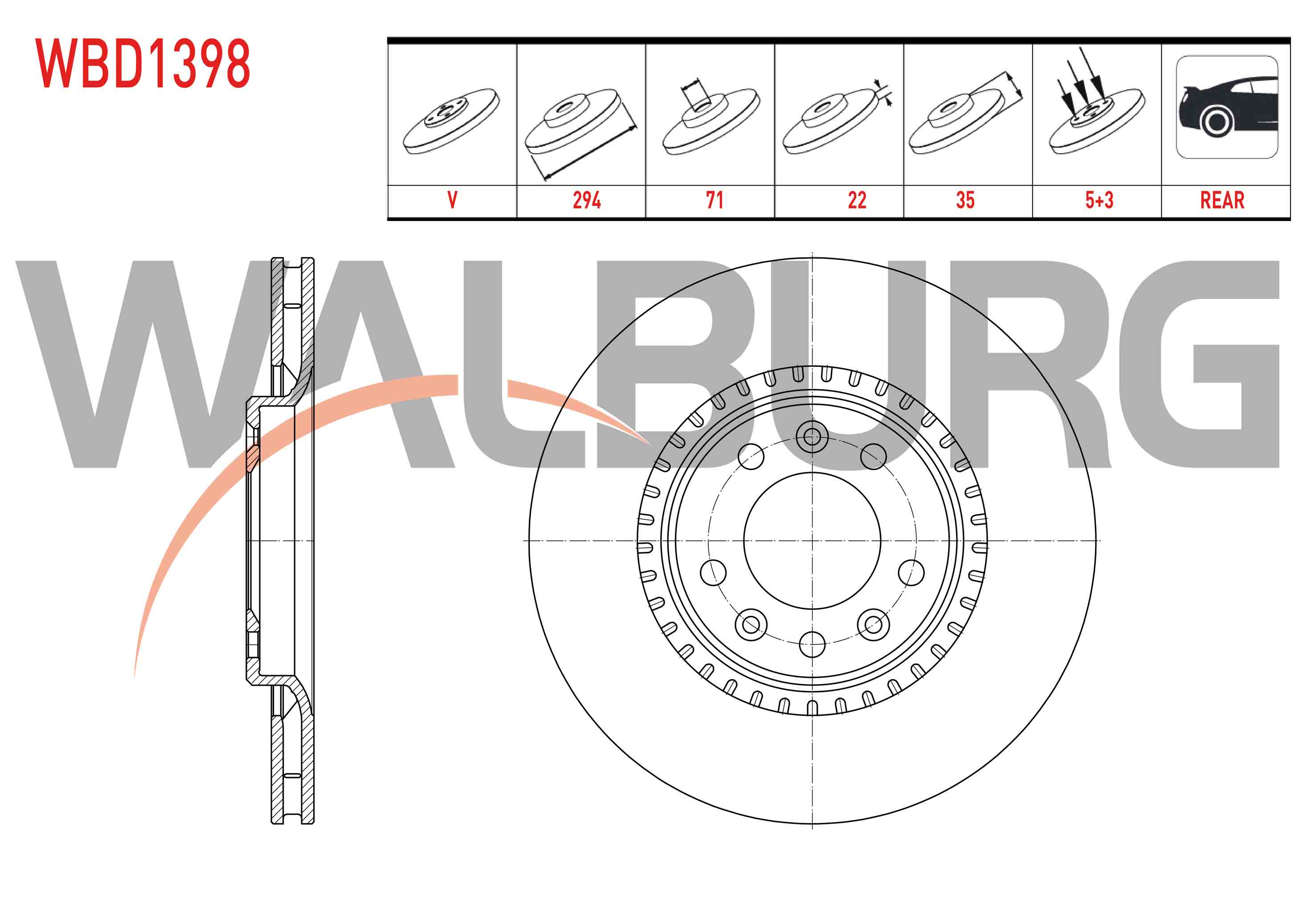 WALBURG WBD1398 | Fren Diski Arka Havalı 5 Bjn 294X22x71x35 Peugeot Expert 1.6 Bluehdı 2016-/ Expert 2.0 HDI 2016-/ Citroen Jumpy III 1.6 HDI 2016-/ Jumpy III 2.0 HDI 2016-/ Toyota Proace 1.6 D 2016-/ Proace 2.0 D 2016-| 2 Adet Takım