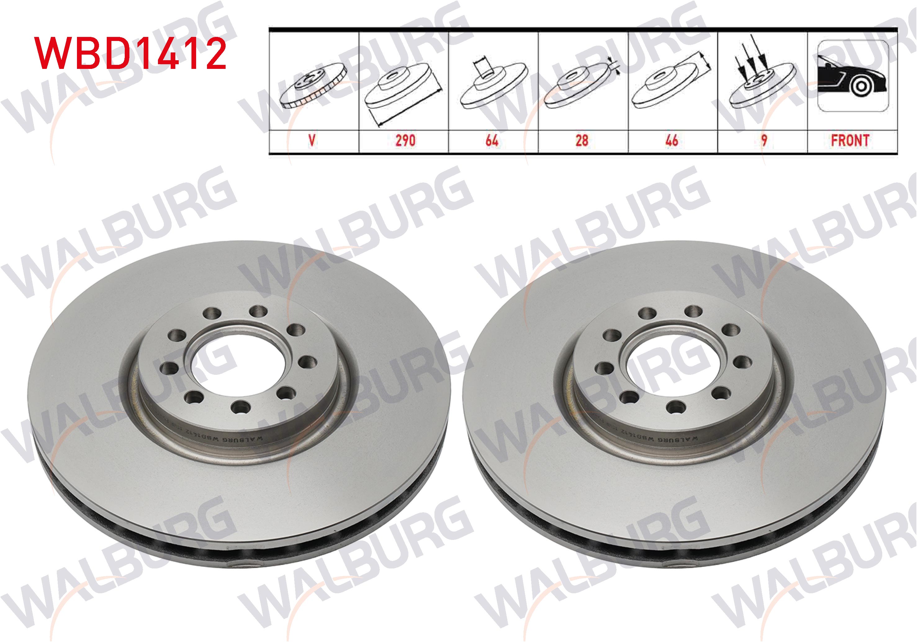 WALBURG WBD1412 | Fren Diski Ön Havalı 9 Bjn 290X28x64x46 Iveco Daily III 2.8 D 1999-2006 / Daily IV 2.3-3.0 D 2006-2011 / Daily V 2.3 D 8 2011-2014 / Daily VI (70 C15) 2.3 D-3.0 D 2014-| 2 Adet