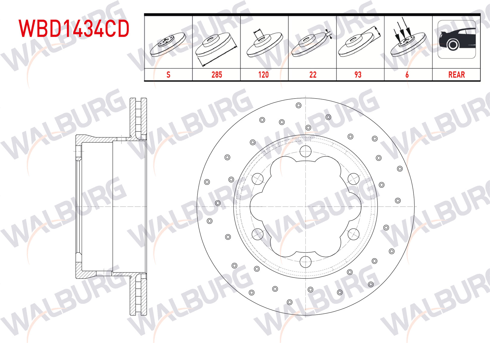 WALBURG WBD1434CD | Fren Diski Arka Havalı Kaplamalı Performans Delikli 6 Bjn 285X22x120x93 M.Benz Sprinter 208 CDI-211 CDI / 308 CDI-311 CDI / 411 CDI-413 CDI 1995-2006 / VW Lt 28-46 II 2.5 TDI-2.8 TDI 1996-2006 | 2 Adet