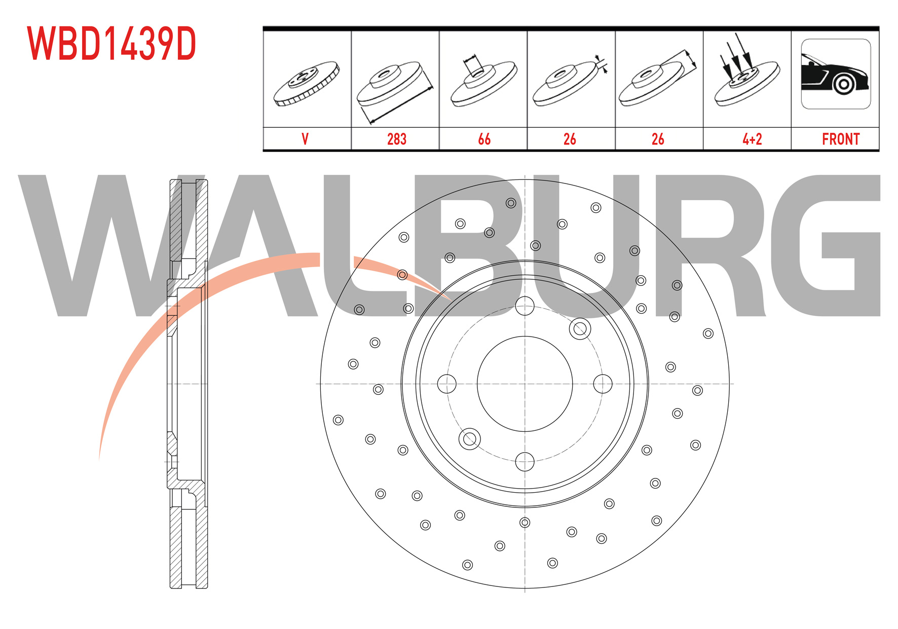 WALBURG WBD1439D | Fren Diski Ön Havalı Performans Delikli 4 Bjn 283X26x66x26 Peugeot 406 2.0İ-3.0 1995-2004 / Citroen Xantia 2.0 1993-1998 | 2 Adet