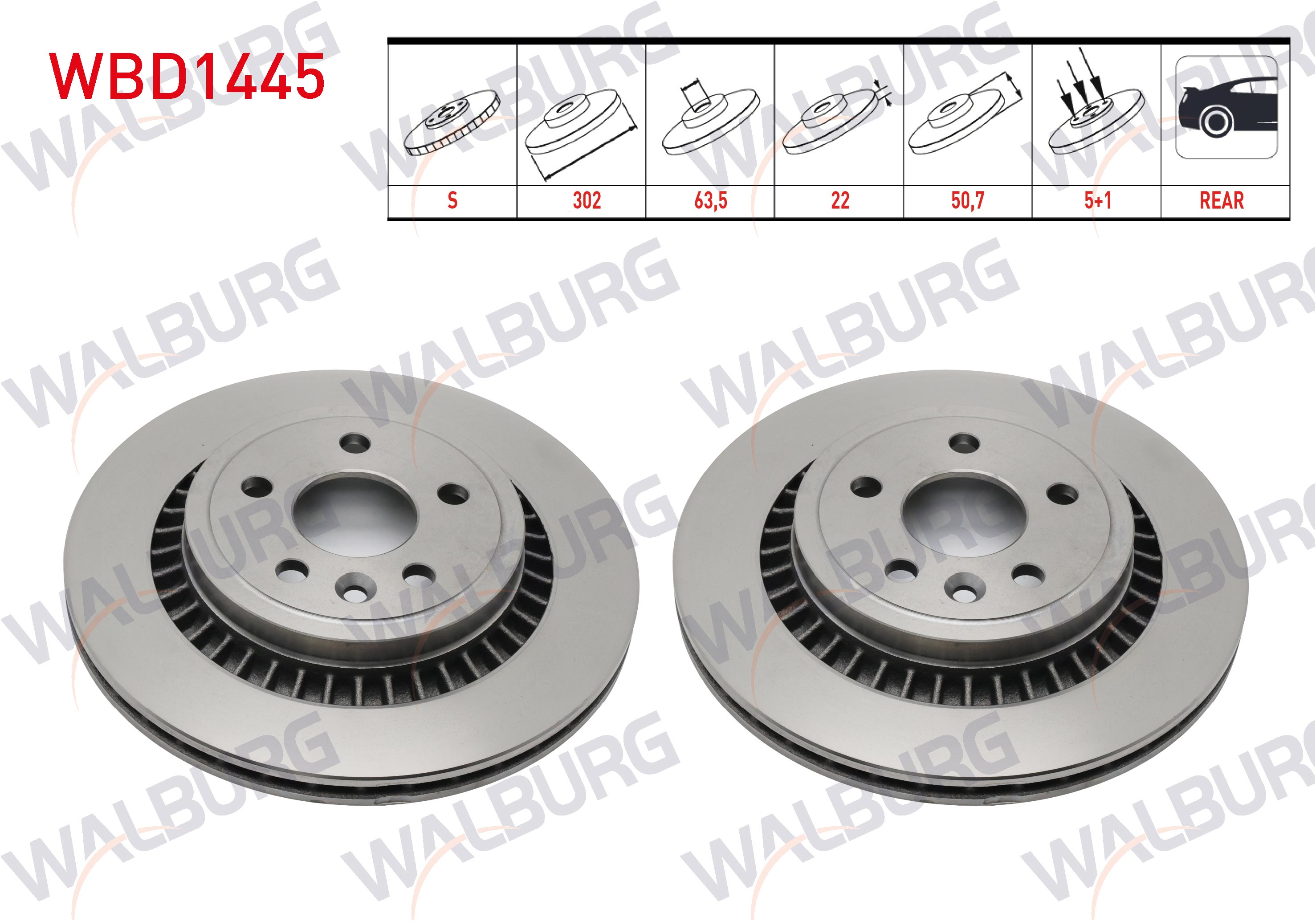 WALBURG WBD1445 | Fren Diski Arka Havalı 5 Bjn 302X22x53,5X50,7 Volvo Xc60 D3-D4-D5-2.4 D 2008-2017 | 2 Adet