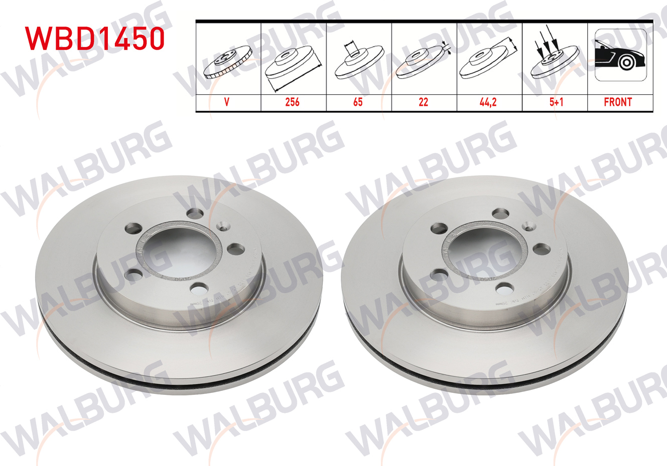 WALBURG WBD1450 | Fren Diski Ön Havalı 5 Bjn 256X22x65x44,2 Volkswagen Polo (Aw1) 1.0 TSI-1.6 TDI 2018-/ Seat Ibiza (Kj1) 1.0 TSI 2017-| 2 Adet
