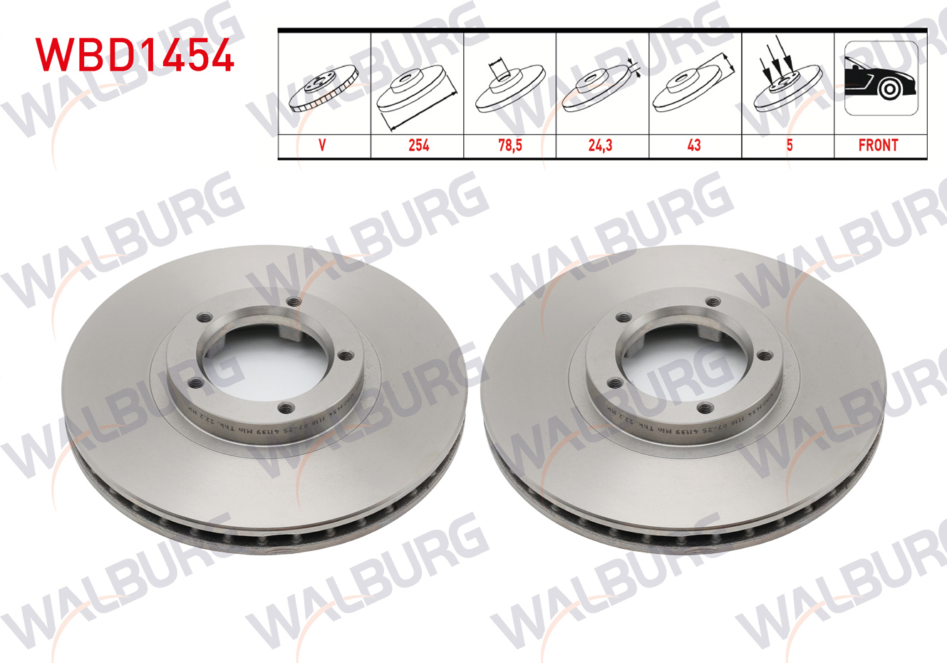 WALBURG WBD1454 | Fren Diski Ön Havalı 5 Bjn 254X24,3X78,5X43 Ford Transit (T12) 2.5 D-2.5 Dı 1991-1998 | 2 Adet Takım