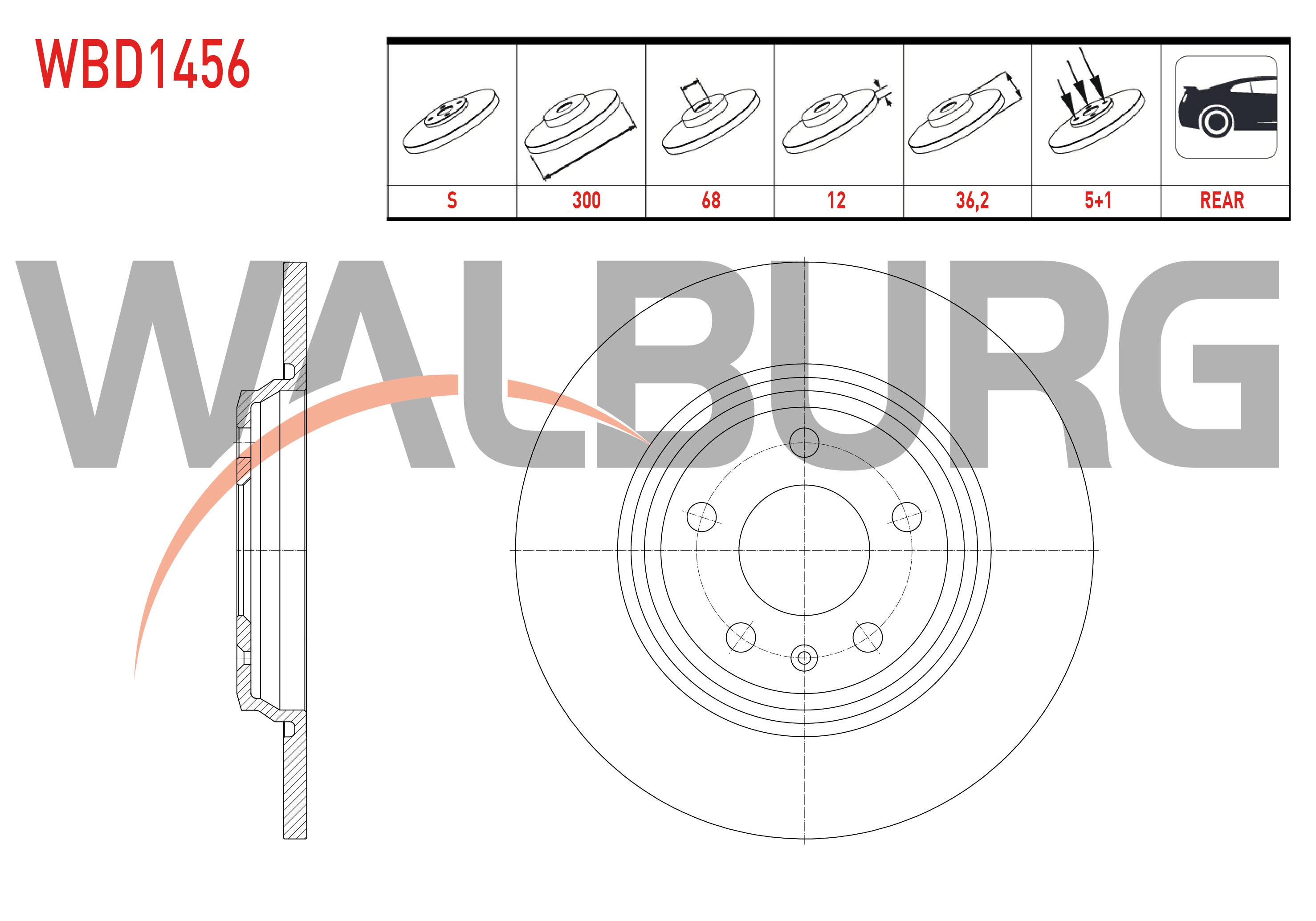 WALBURG WBD1456 | Fren Diski Arka Düz 5 Bjn 300X12x68x36,2 Audi A4 1.4 TFSI-2.0 TDI 2015-/ A5 1.4 TFSI-2.0 TDI 2017-/ Q5 2.0 TDI-3.0 TDI 2016-| 2 Adet
