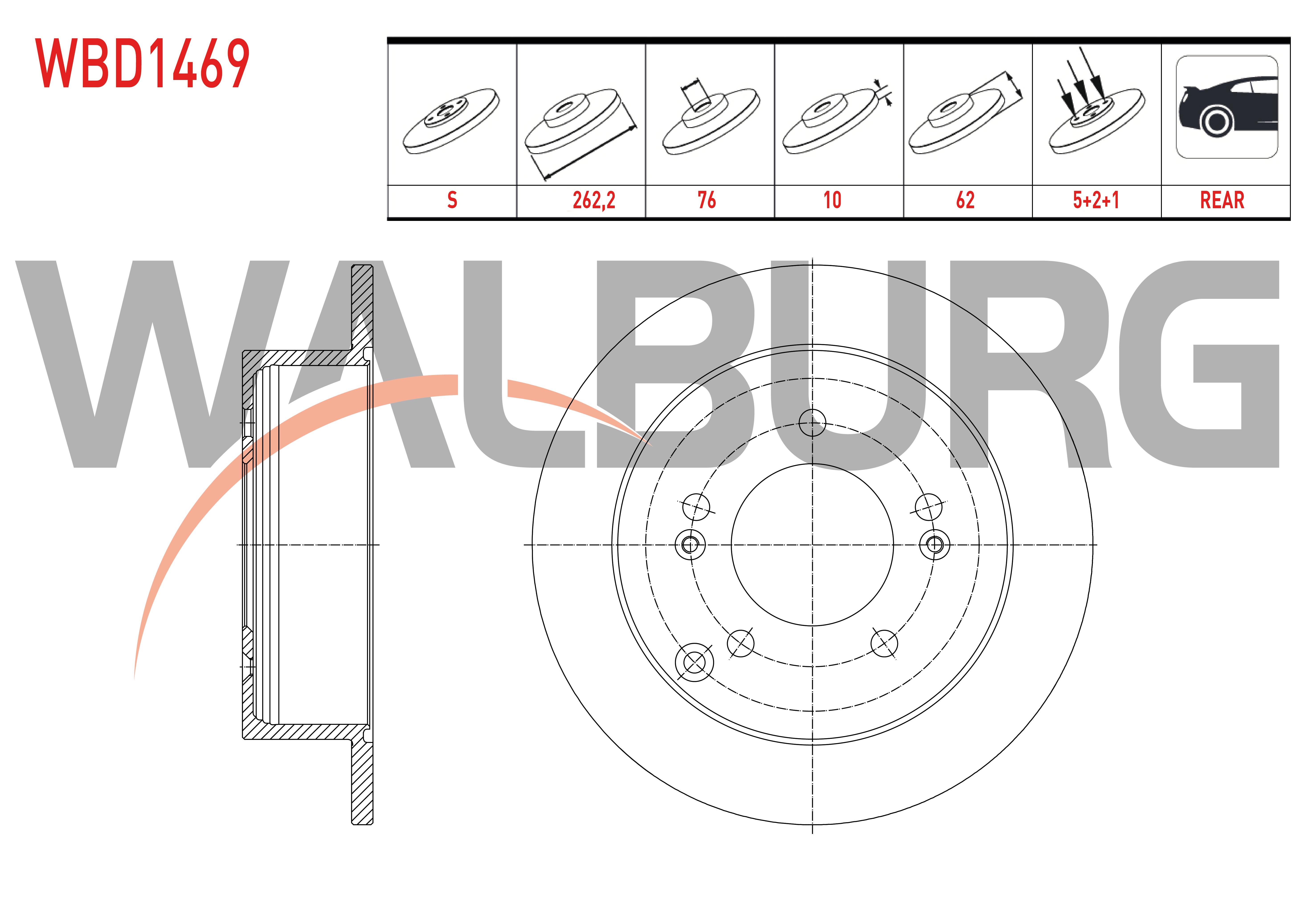 WALBURG WBD1469 | Fren Diski Arka Düz 5 Bjn 262,2X10x76x62 Kia Sportage 2.0 CRDI 2004-2010 / Magentis 2.0-2.0 CRDI 2005-/ Hyundai Tucson 2.0 CRDI 2004-2010 / Sonata 2.0 VVTI-2.0 CRDI 2005-2010 | 2 Adet
