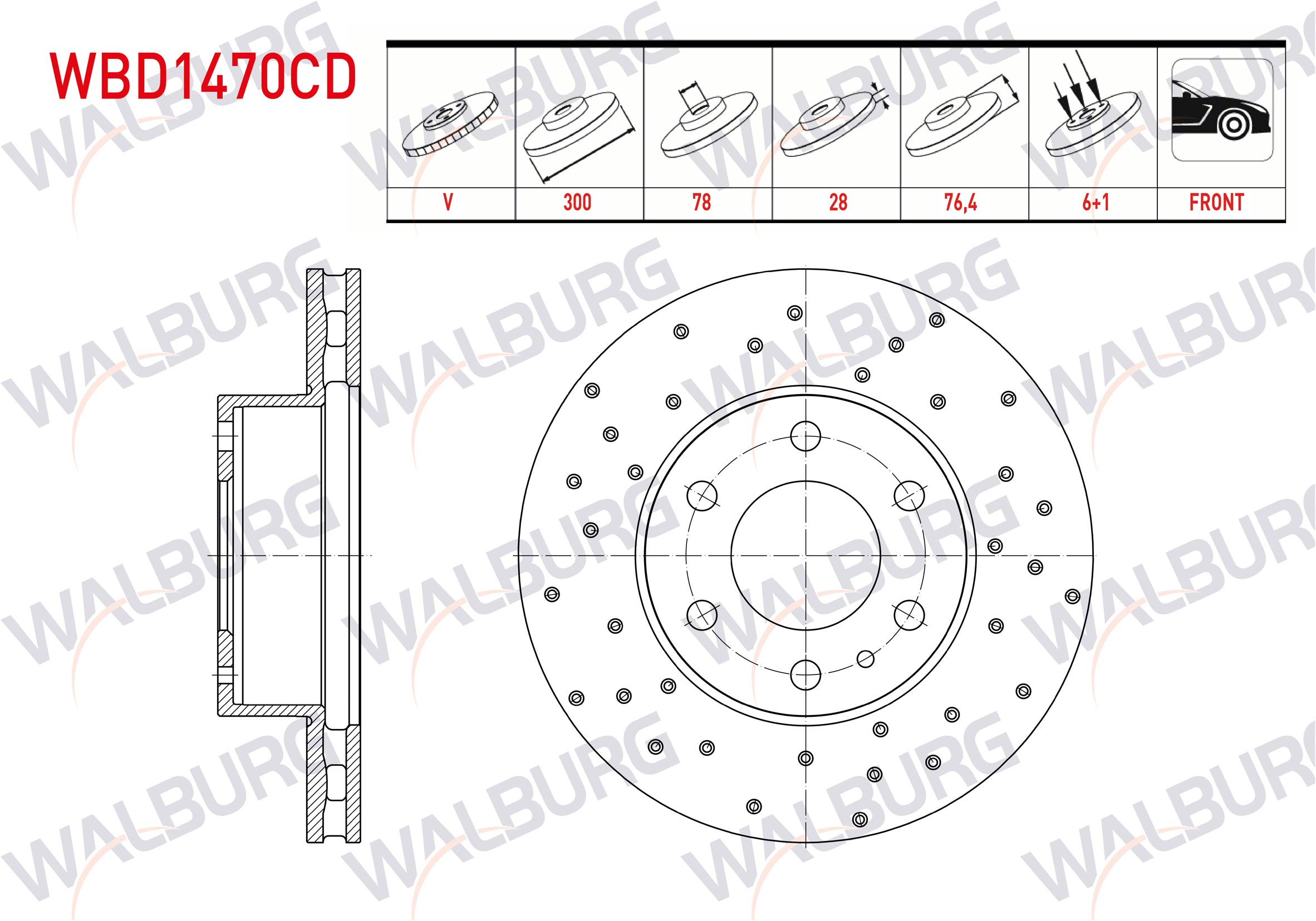 WALBURG WBD1470CD | Fren Diski Ön Havalı Kaplamalı Performans Delikli 6 Bjn 300X28x78x76,4 Iveco Daily IV (35S11–35S13-35S15–35S18) 2.3 D 2006-2011 | 2 Adet