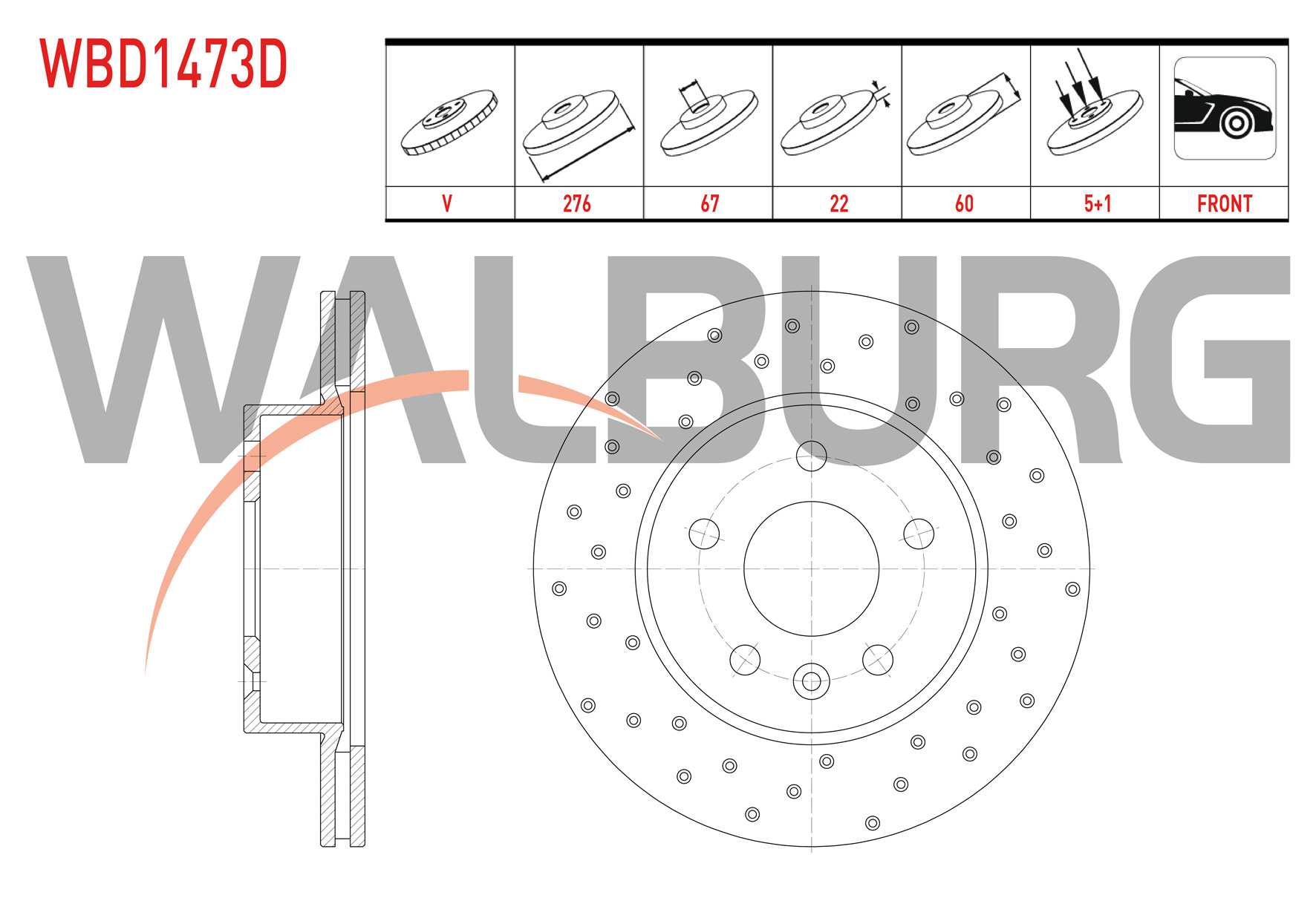 WALBURG WBD1473D | Fren Diski Ön Havalı Performans Delikli 5 Bjn 276X22x67x60mercedes Vito (638) 108 CDI-110 CDI-112 CDI 1997-2003 | 2 Adet