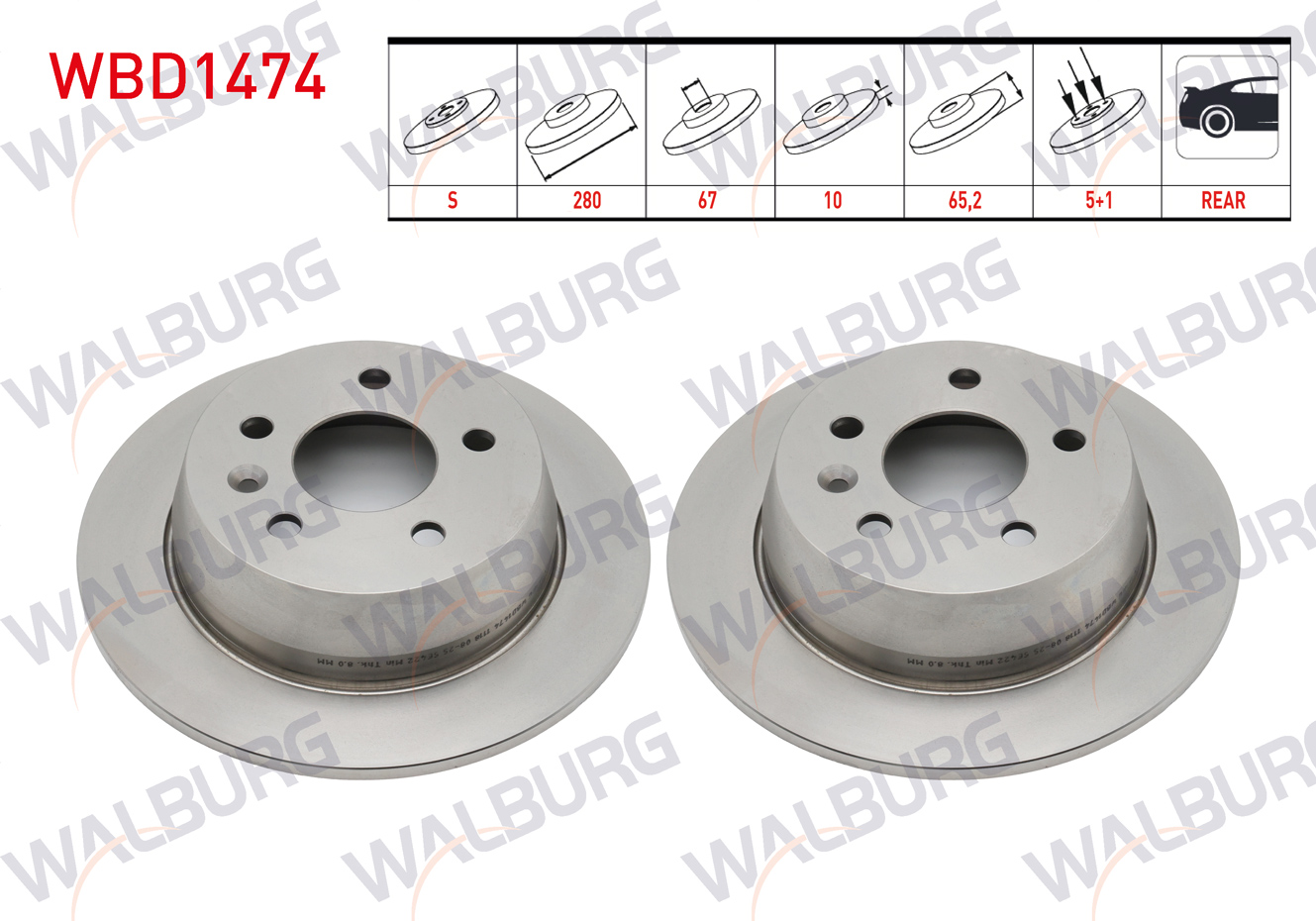 WALBURG WBD1474 | Fren Diski Arka Düz 5 Bjn 280X10x67x65,2 Mercedes Vito (638) 108 CDI-110 CDI-112 CDI 1997-2003 | 2 Adet