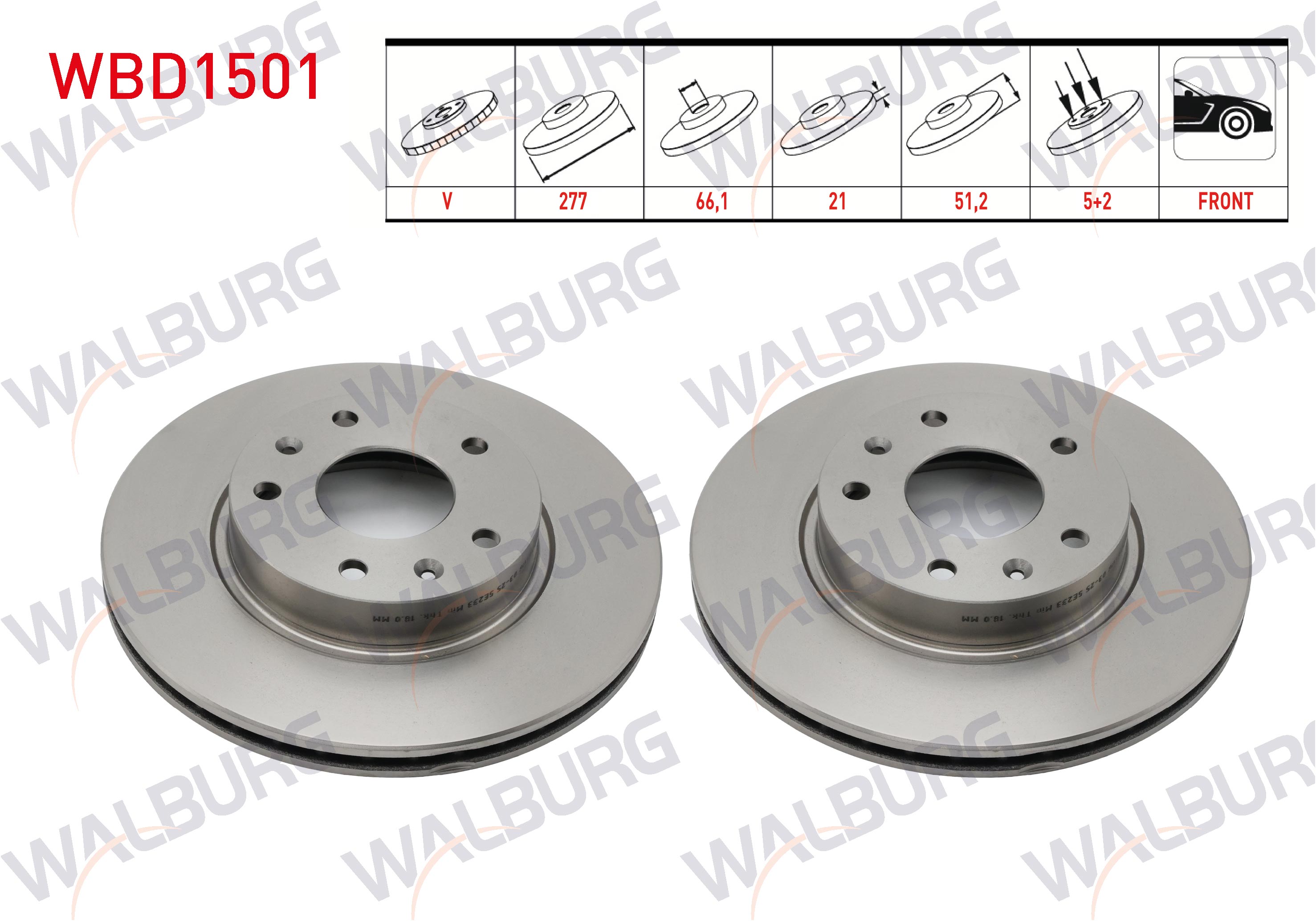WALBURG WBD1501 | Fren Diski Ön Havalı Land Rover Freelander (Ln) 2.0 Td4 5 Bjn 277X21x66,1X51,2 1998-2007 | 2 Adet Takım