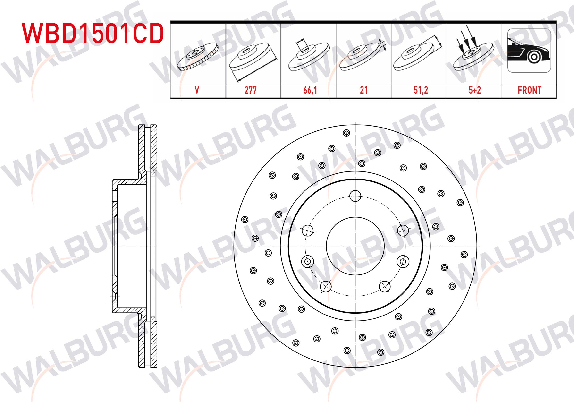 WALBURG WBD1501CD | Fren Diski Ön Havalı Kaplamalı Performans Delikli Land Rover Freelander (Ln) 2.0 Td4 5 Bjn 277X21x66,1X51,2 1998-2007 | 2 Adet