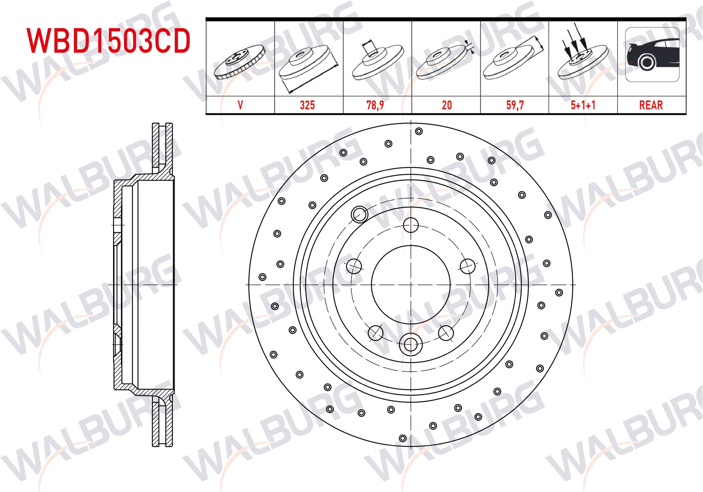 WALBURG WBD1503CD | Fren Diski Arka Havalı Kaplamalı Performans Delikli Land Rover Range Rover Sport (Ls) 2.7 TD 5 Bjn 325X20x78,9X59,7 2005-2013 | 2 Adet