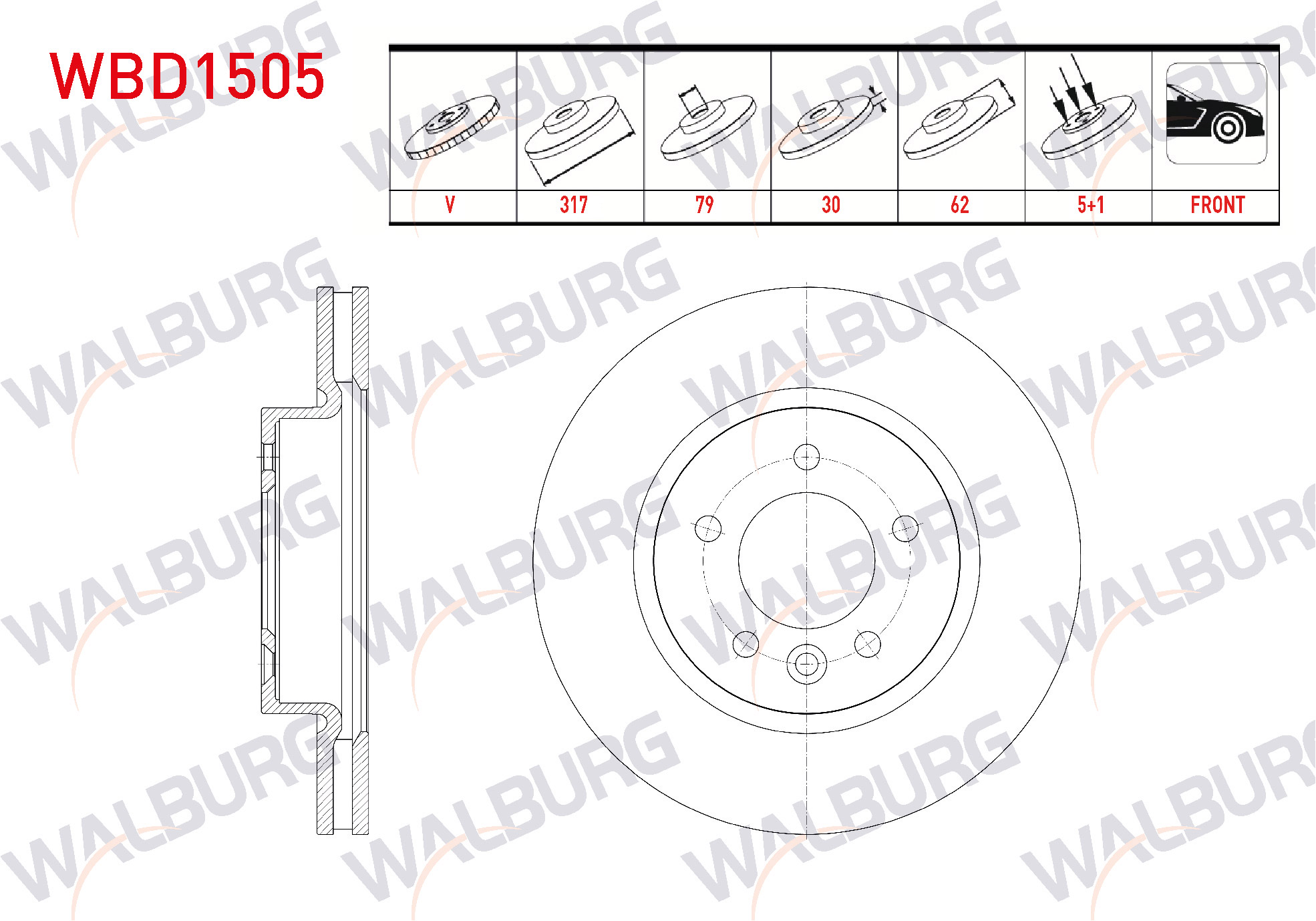 WALBURG WBD1505 | Fren Diski Ön Havalı Land Rover Discovery III (Taa) 2.7 V6 TDI 5 Bjn 317X30x79x62 2004-2010 | 2 Adet