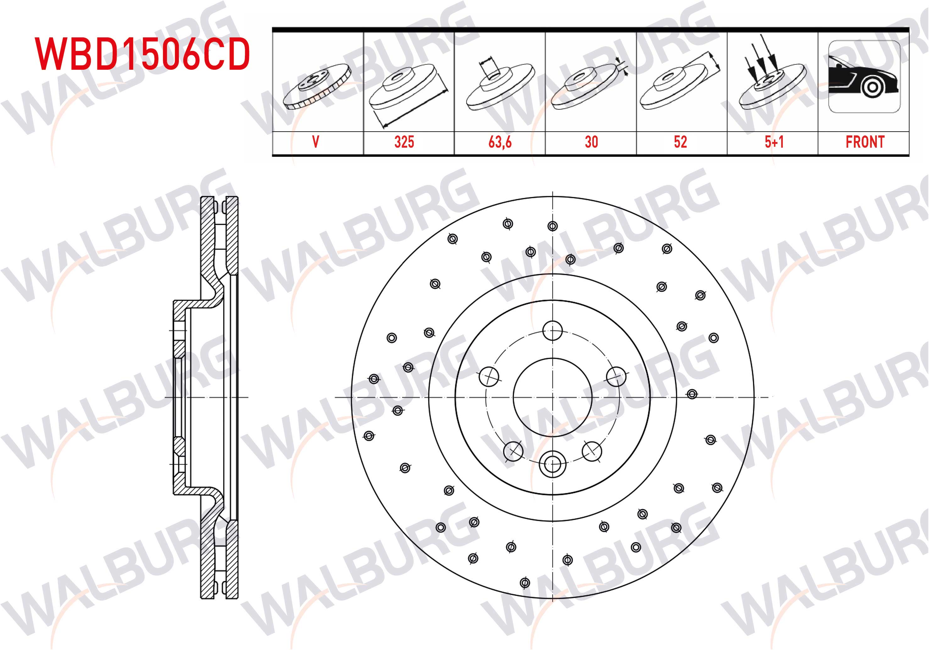 WALBURG WBD1506CD | Fren Diski Ön Havalı Kaplamalı Performans Delikli Land Rover Discovery Sport (Lc) 2.0 Td4 5 Bjn 325X30x63,6X52 2014-| 2 Adet