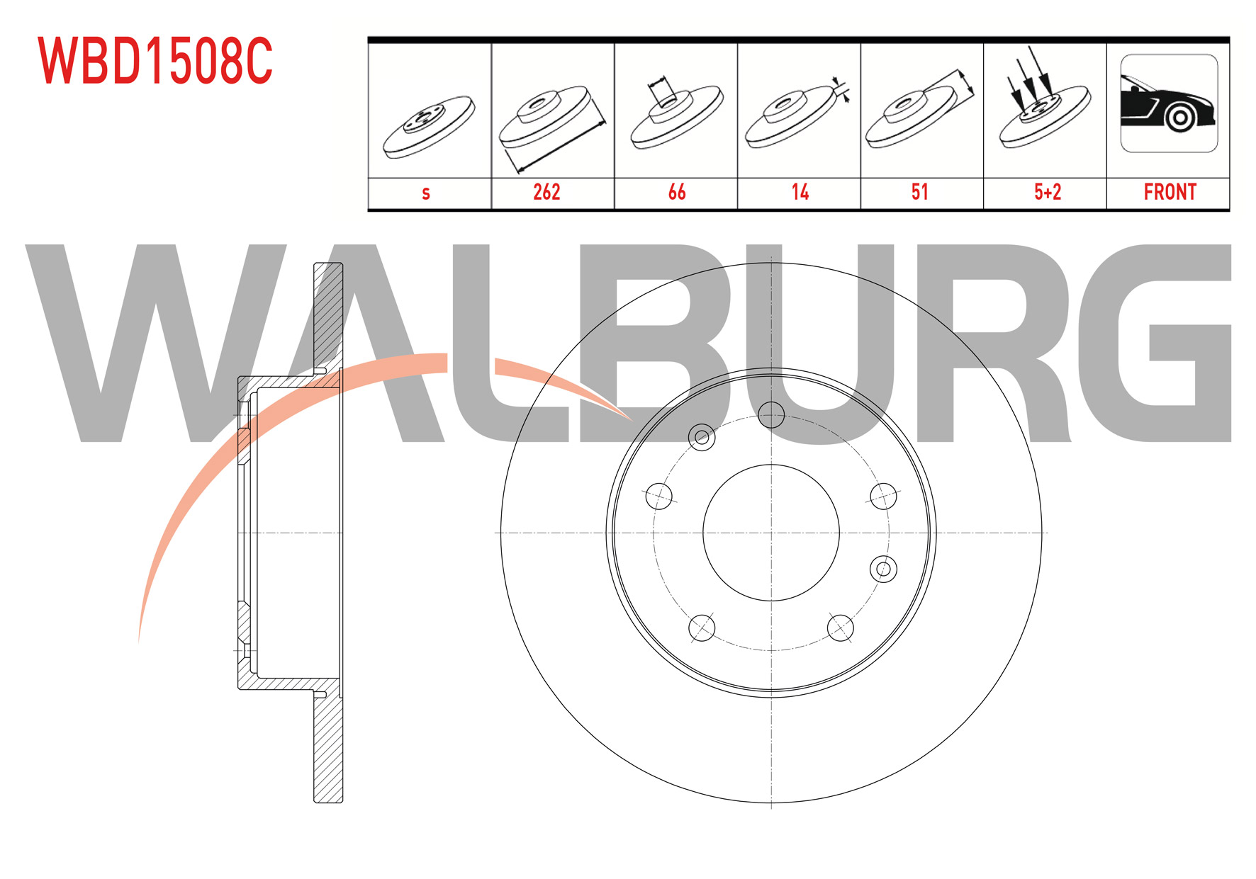 WALBURG WBD1508C | Fren Diski Ön Düz Kaplamalı Land Rover Freelander (Ln) 2.0 Td4 5 Bjn 262X14x66x51 1998-2007 | 2 Adet
