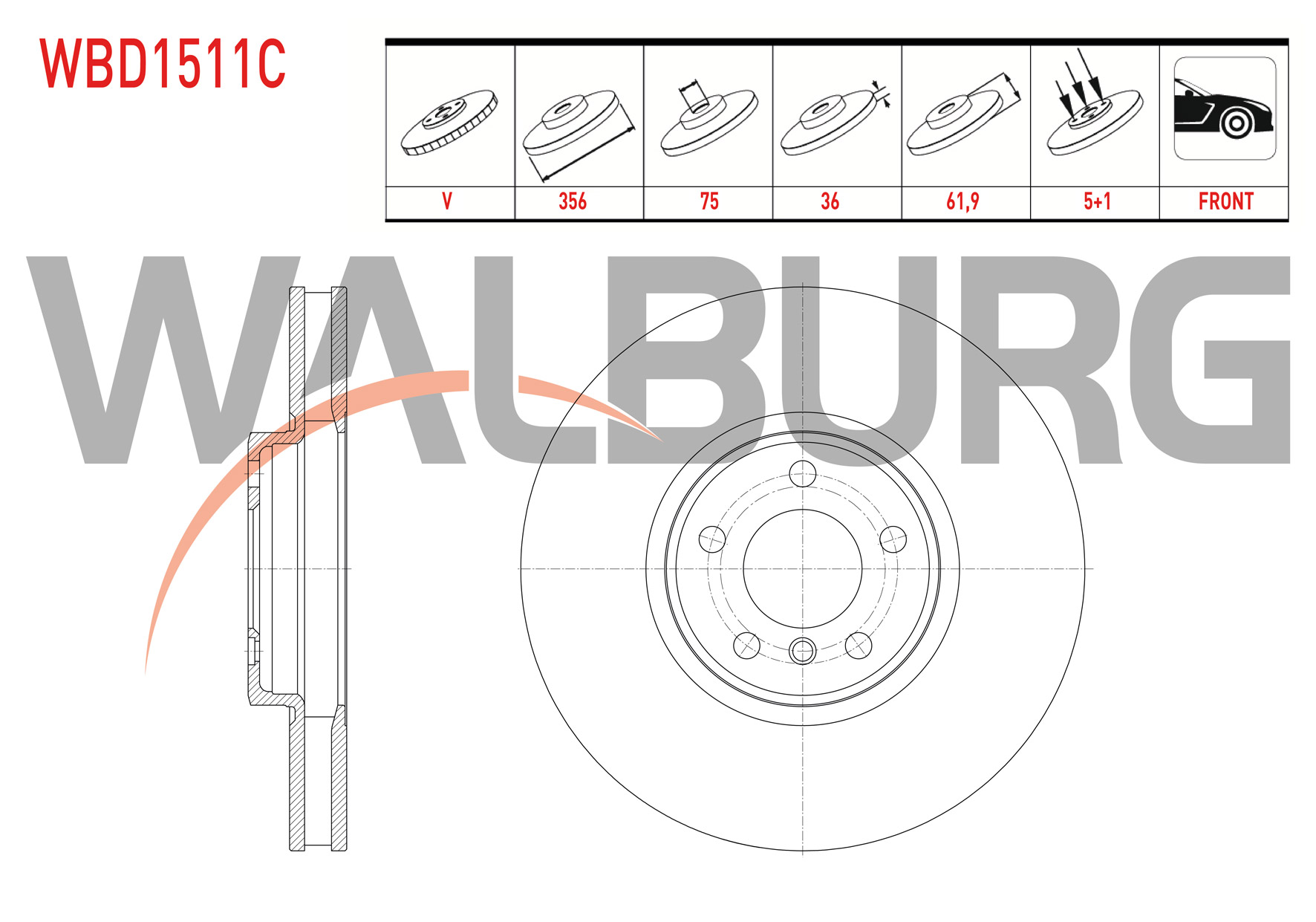 WALBURG WBD1511C | Fren Diski Ön Havalı Kaplamalı BMW X5 (E53) 4.4İ 5 Bjn 356X36x75x61,9 2000-2007 | 2 Adet