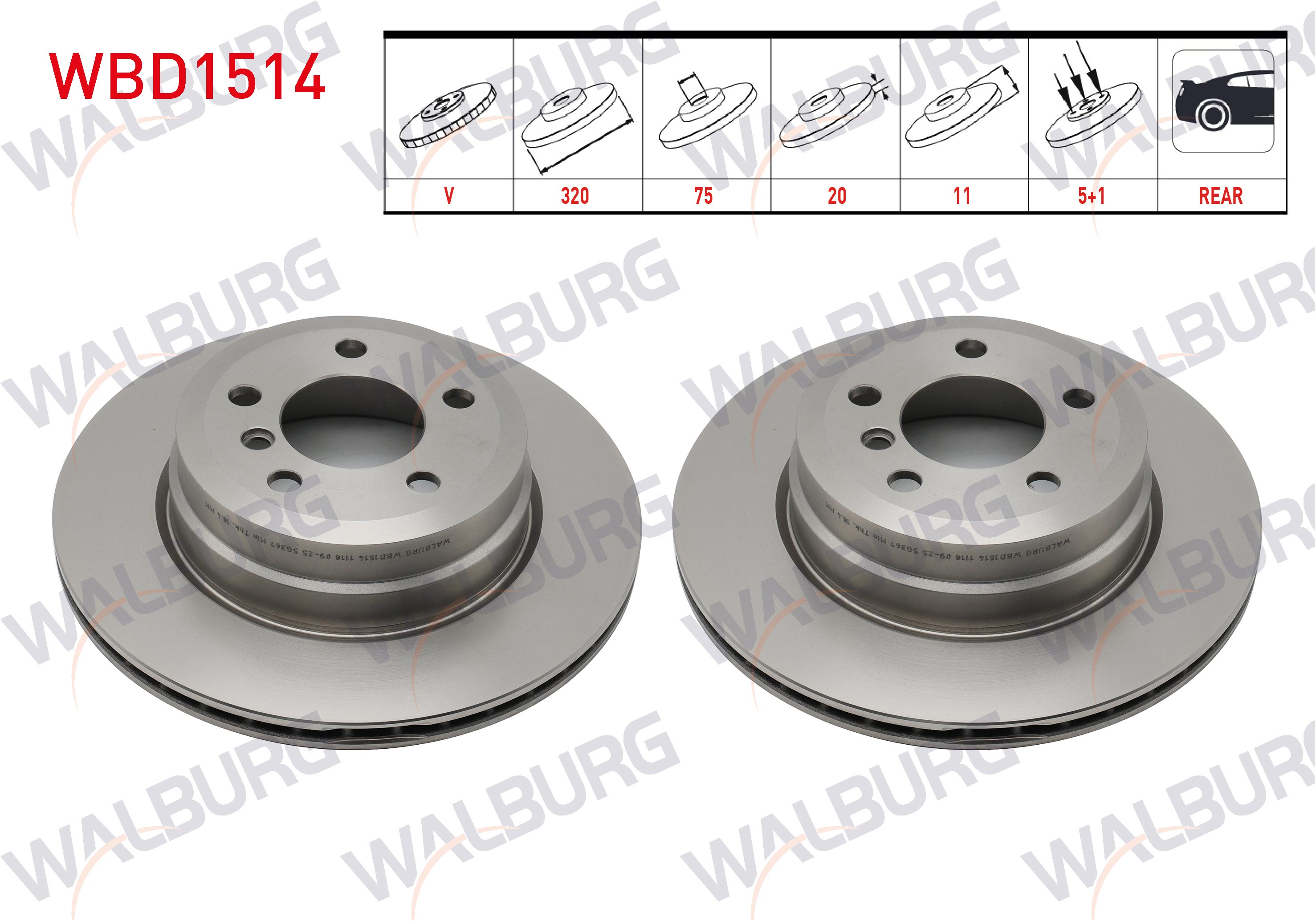 WALBURG WBD1514 | Fren Diski Arka Havalı 5 Bjn 320X20x75x78,6 BMW X5 (E70) 3.0 D-4.0 D 2007-2012 / X6 (E71,E72) 3.0 D-3.5 D-4.0 D 2008-| 2 Adet Takım