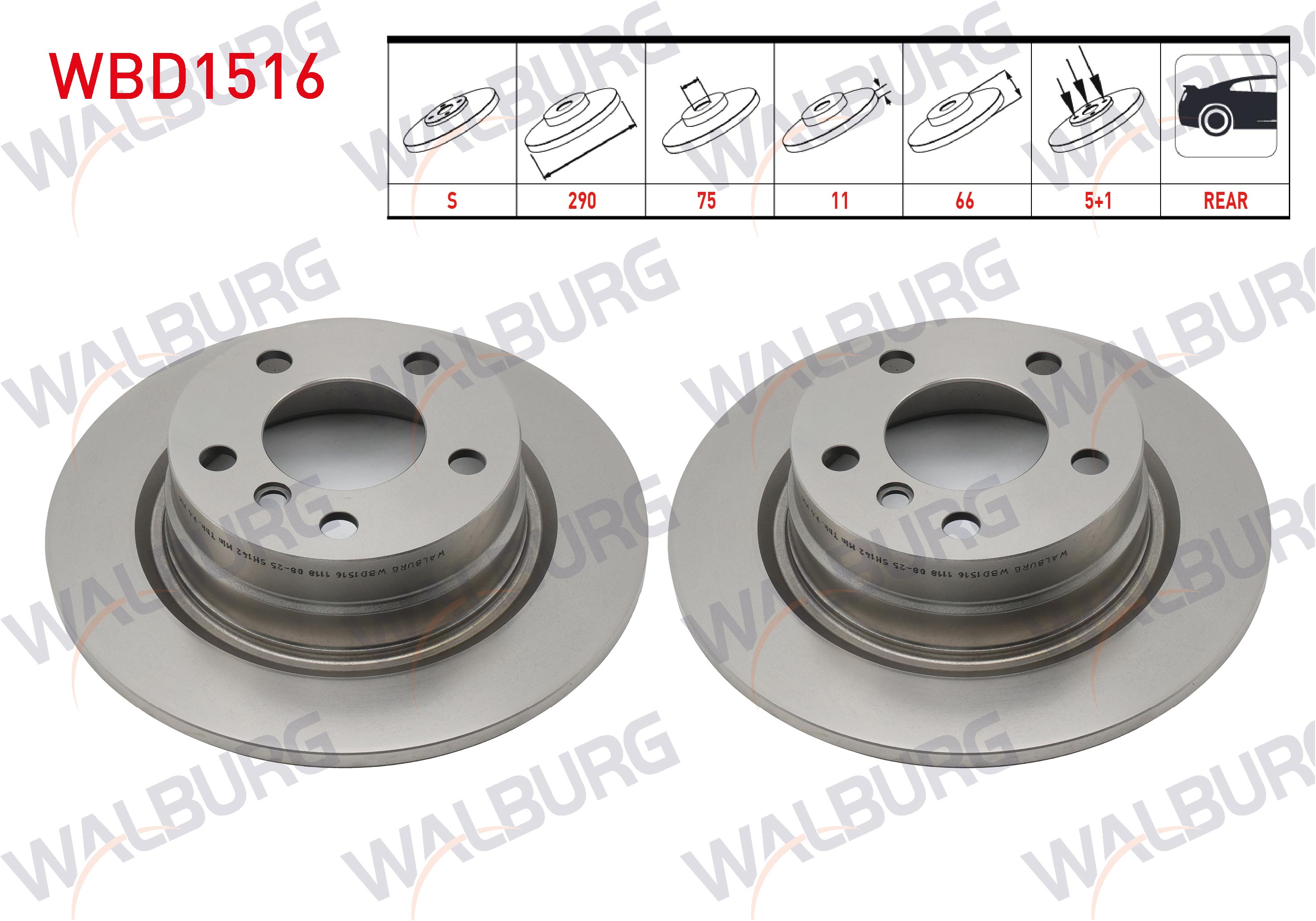 WALBURG WBD1516 | Fren Diski Arka Düz BMW 1 Serisi (F20,F21) 116 D 5 Bjn 290X11x75x66 2010-| 2 Adet