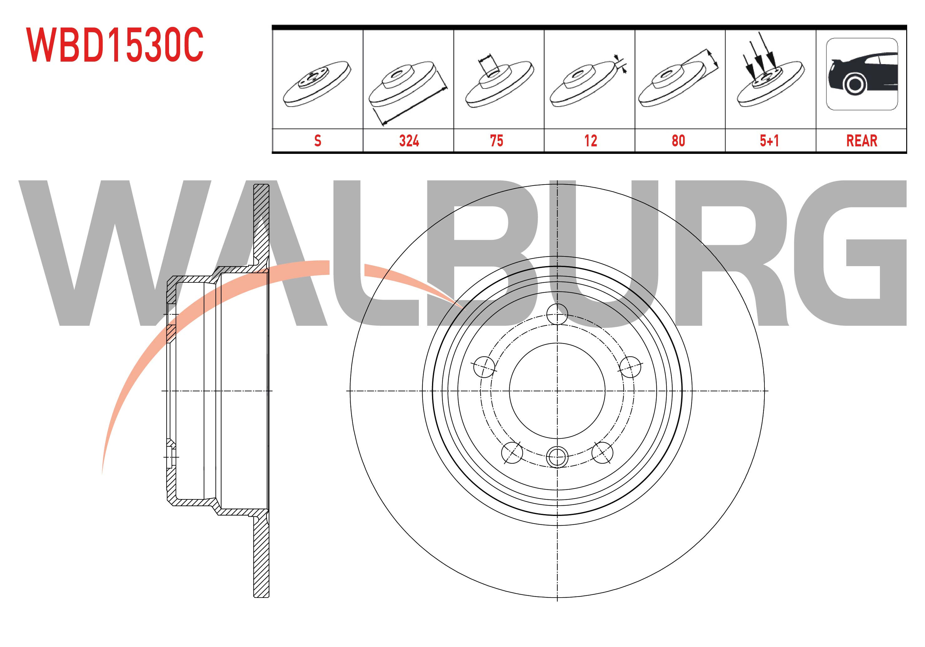 WALBURG WBD1530C | Fren Diski Arka Düz Kaplamalı BMW X5 (E53) 3.0 D 5 Bjn 324X12x75x80 2000-2007 | 2 Adet