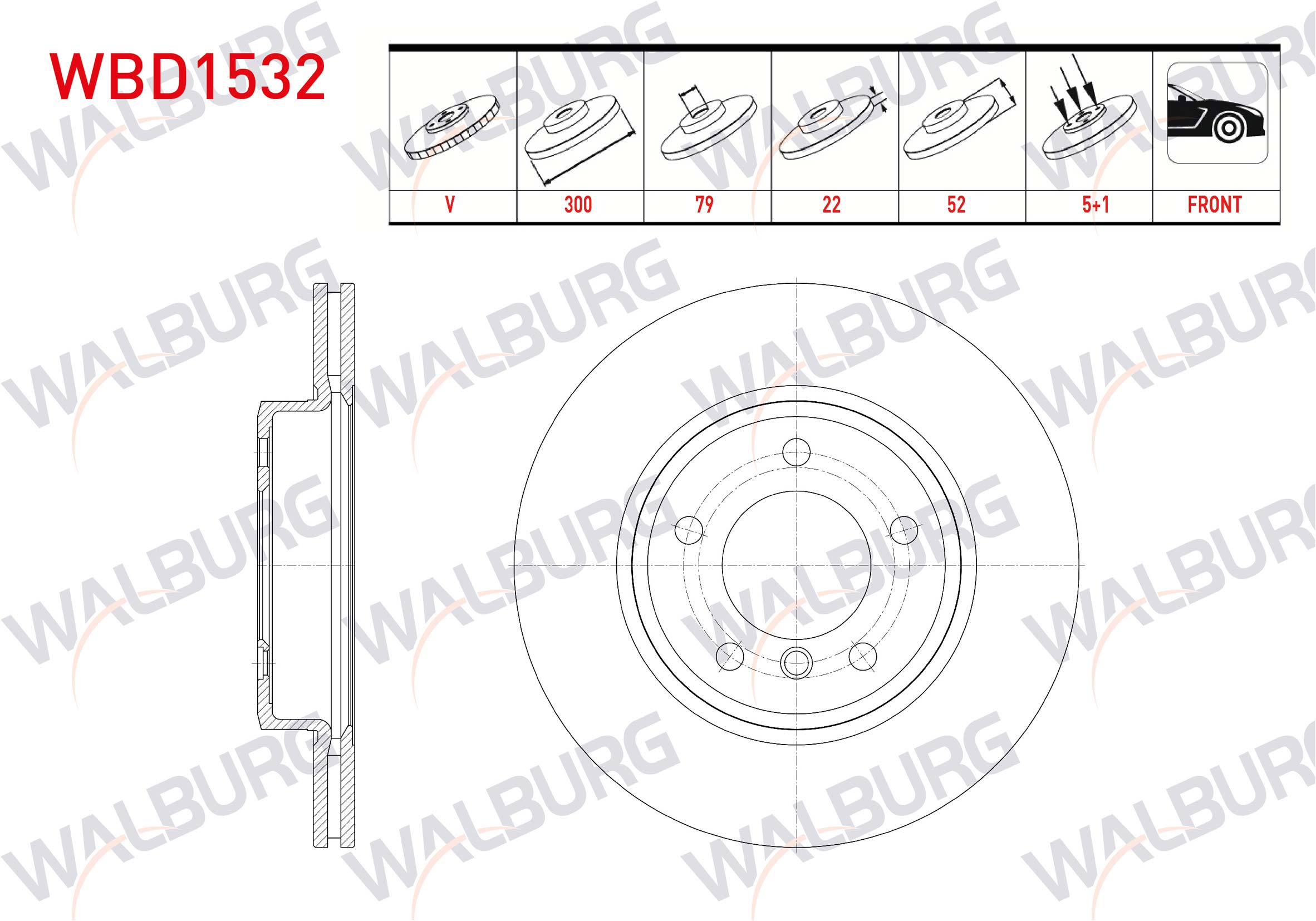WALBURG WBD1532 | Fren Diski Ön Havalı BMW 3 Serisi (E46) 320 D 5 Bjn 300X22x79x52 1998-2005 | 2 Adet